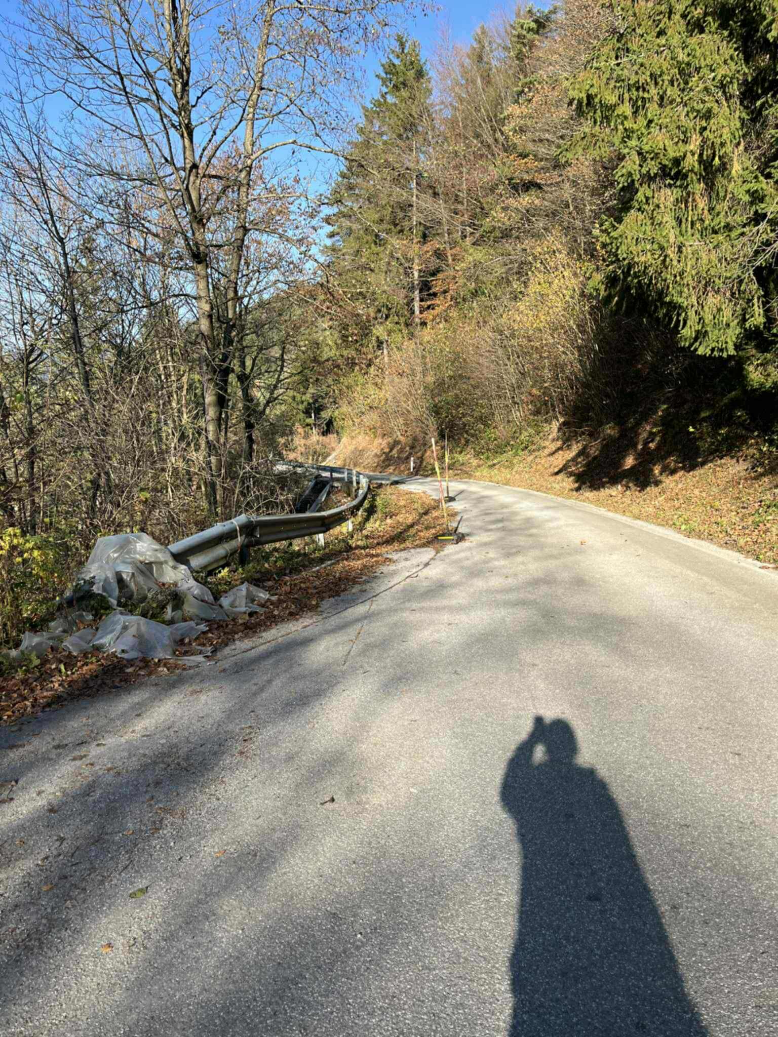 Sprehajalci so na poti proti vrhu, na delu ceste, kjer je delna zapora zaradi udora, našli iglo sredi listja ob cesti.