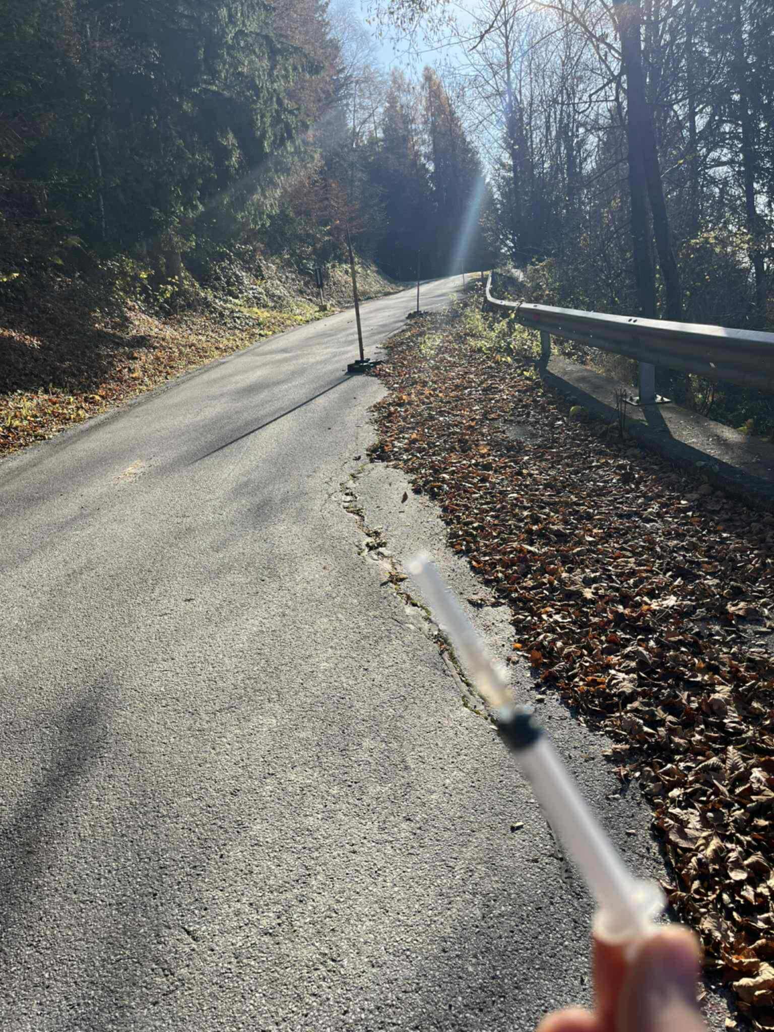 Tokrat so nas bralci opozorili, da so porabljene igle našli na cesti, ki vodi iz Slovenj Gradca proti Rahtelu.