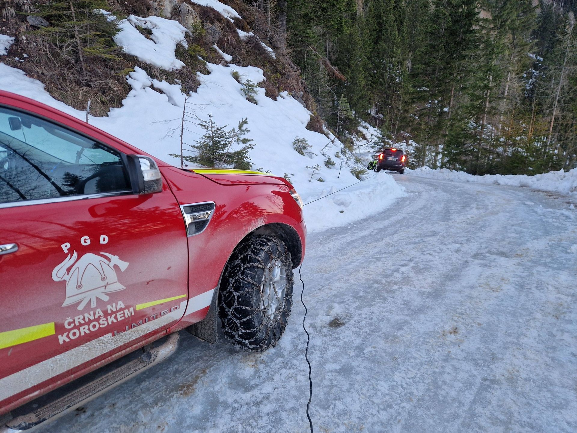 Gasilci PGD Črna so nudli pomoč pri izvleki avtomobila.