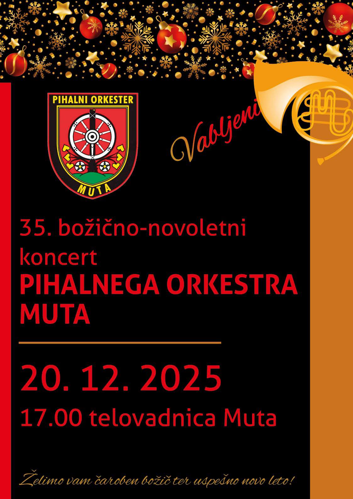 V soboto, 20. decembra, bo Pihalni orkester Muta poskrbel za čudovit, praznično obarvan večer. Tradicionalni, že 35. božično-novoletni koncert bo ob 17. uri v telovadnici Muta pričaral pravo božično vzdušje.