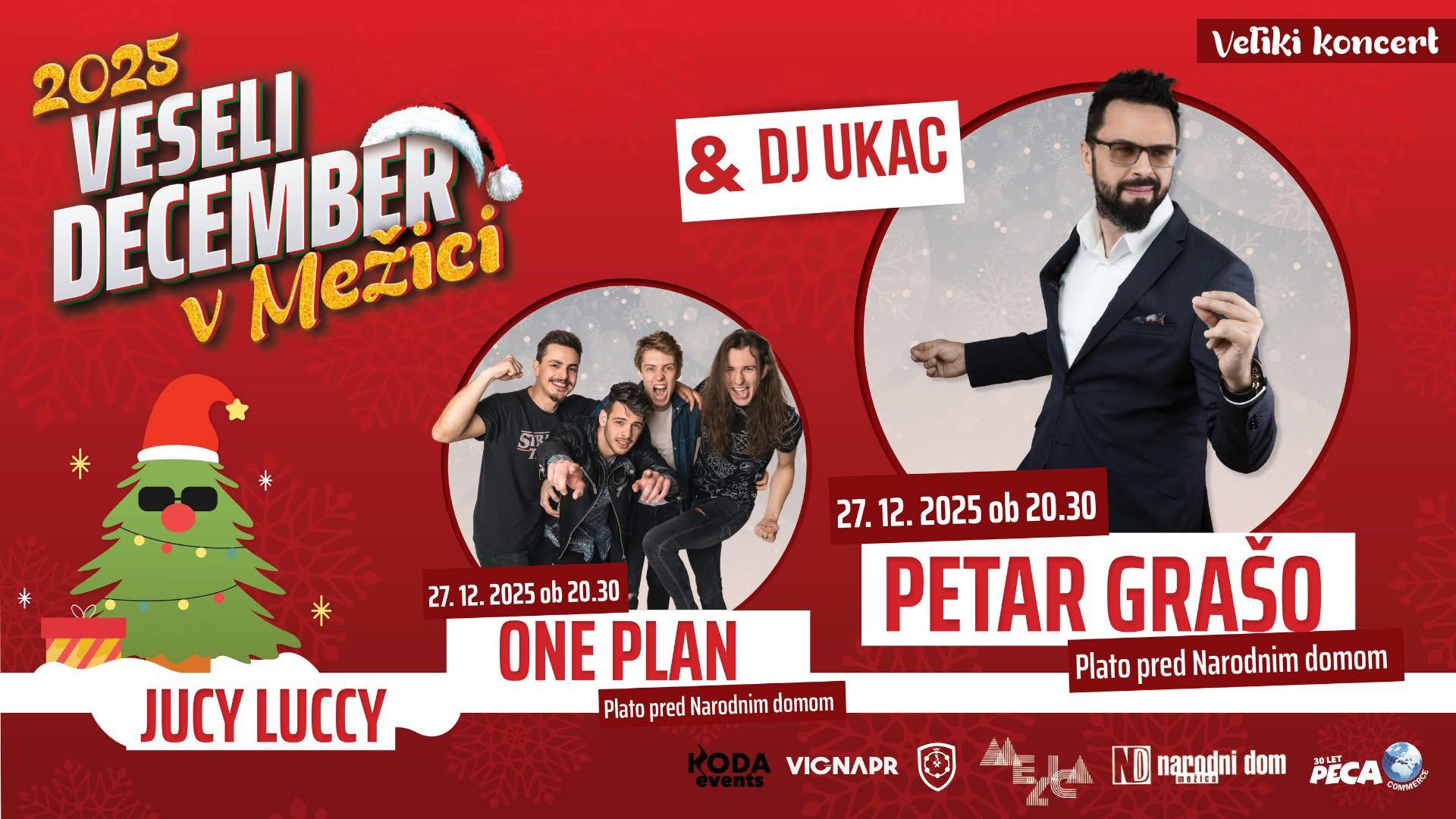 December tisti mesec, ko je dobra volja nalezljiva. Po bolj umirjenih prazničnih dneh bodo Mežico v soboto zavzeli One Plan, Juicy Luccy in Petar Grašo, da bo tudi vikend nepozaben.