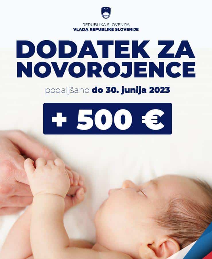 Do enkratnega solidarnostnega dodatka za novorojence v višini 500 evrov je upravičen eden od staršev ali druga oseba ali posvojitelj za vsakega otroka s stalnim prebivališčem v Republiki Sloveniji, rojenega do 30. junija 2023.