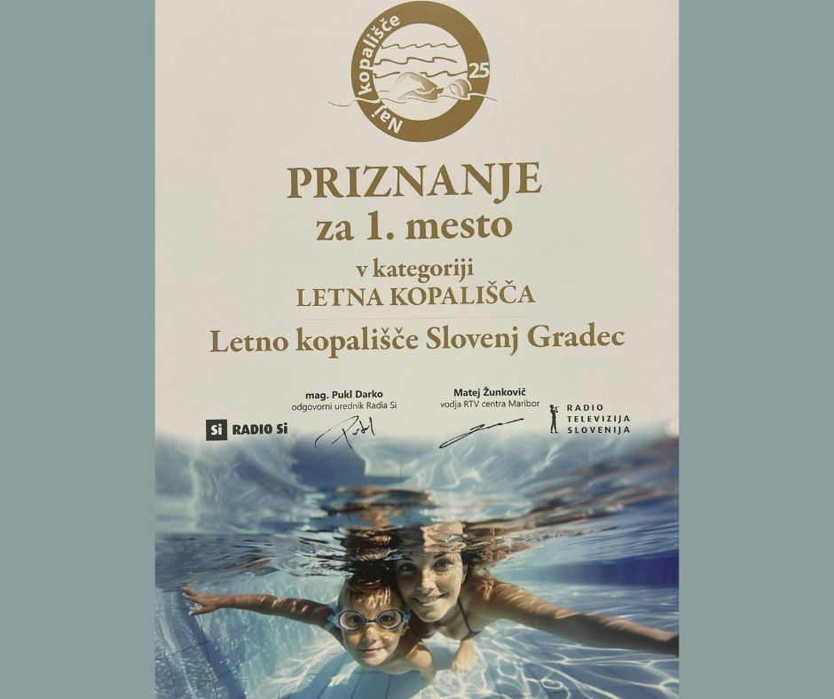 Danes so se predstavniki Javnega zavoda Spotur in Aqualatia Slovenj Gradec z velikim ponosom udeležili podelitve priznanj Naj kopališče 2025, kjer je med kar 50 sodelujočimi kopališči Aqualatio prejel 1. mesto v kategoriji “Letna kopališča”.