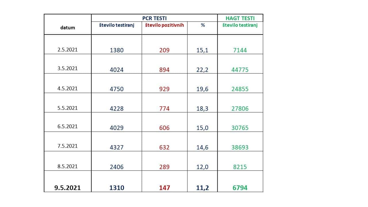Trend obolelosti s koronavirusom v Sloveniji na dan 9. 5. 2021 (00:00-24:00):