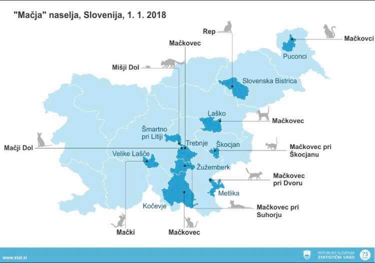 Točnega števila koliko mačk živi v Sloveniji ni. Je pa zanimiv podatek, da 600 prebivalcev Slovenije živi v “mačjih naseljih”: