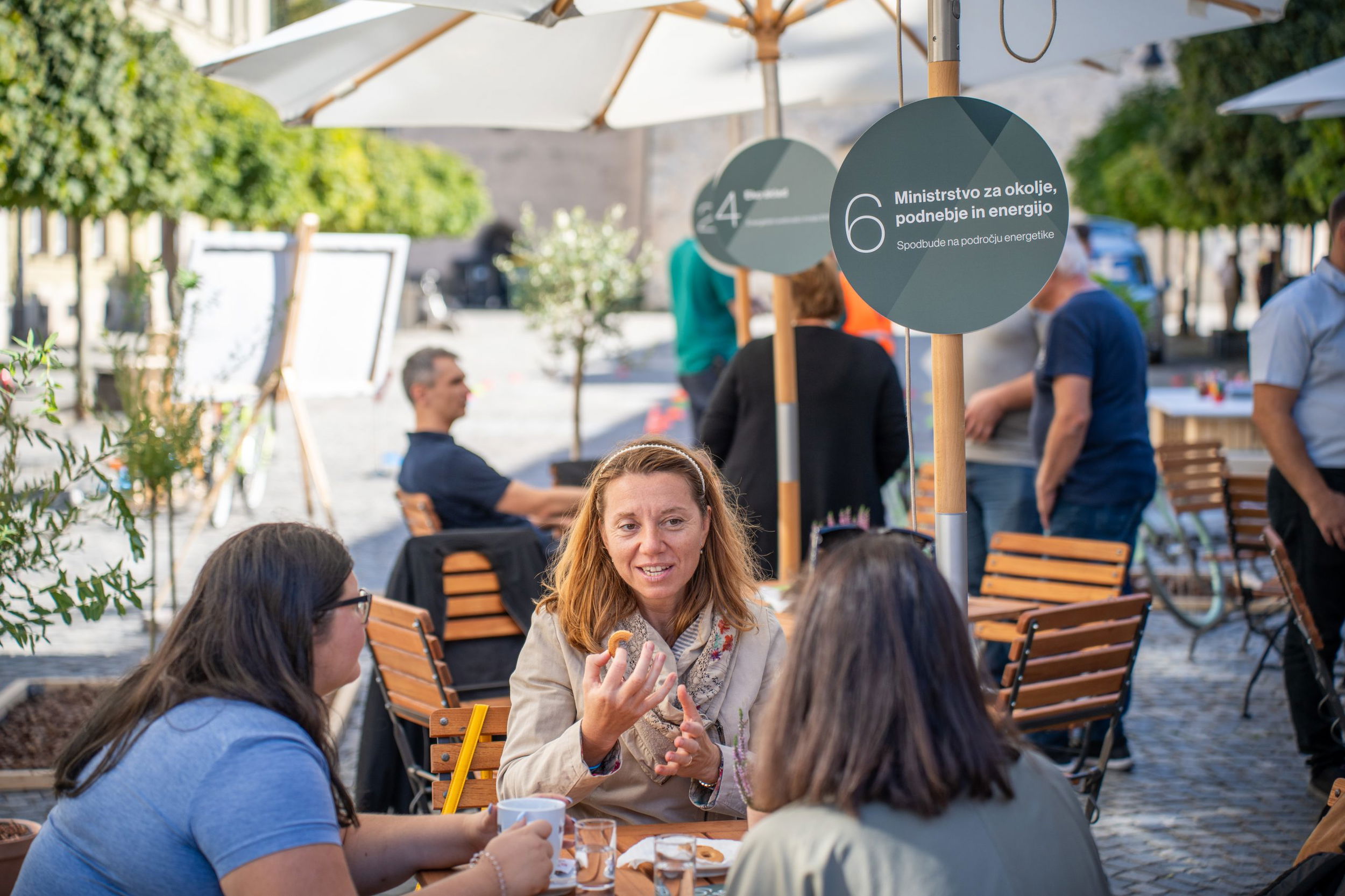 Ministrstvo za okolje, podnebje in energijo v sodelovanju z Eko skladom in Borzenom je v Slovenj Gradcu organiziralo informativni dan – Kavarno zelene prihodnosti, kjer so obiskovalci prišli do konkretnih informacij o aktualnih razpisih in finančnih spodbudah za državljane in podjetja na področju energetike in trajnostne mobilnosti.
