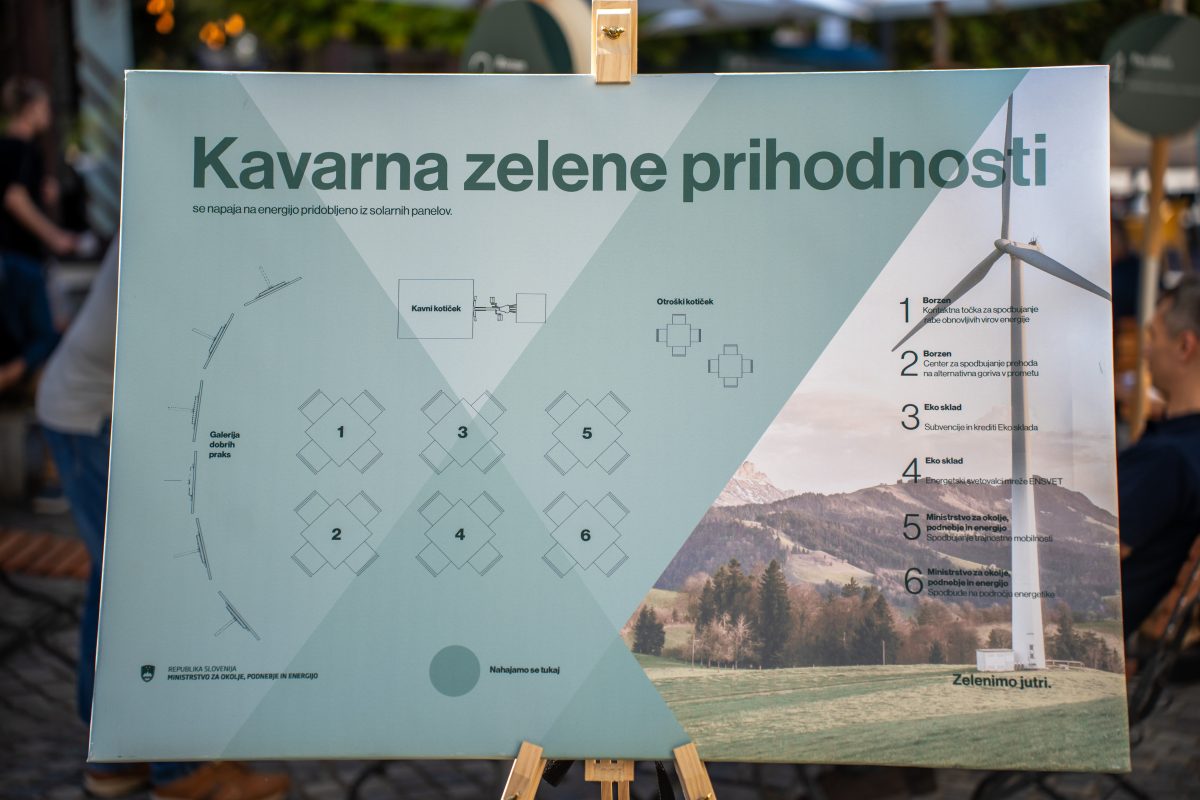 Medtem, ko bodo starši lahko pridobili koristne informacije za svoje domove in poslovne projekte, se bodo otroci zabavali na poligonu v duhu Evropskega tedna mobilnosti. Kavarna zelene prihodnosti v celoti deluje na sončno energijo, vse obiskovalce pa čaka – kot se za vsako dobro kavarno spodobi – tudi odlična kavica.