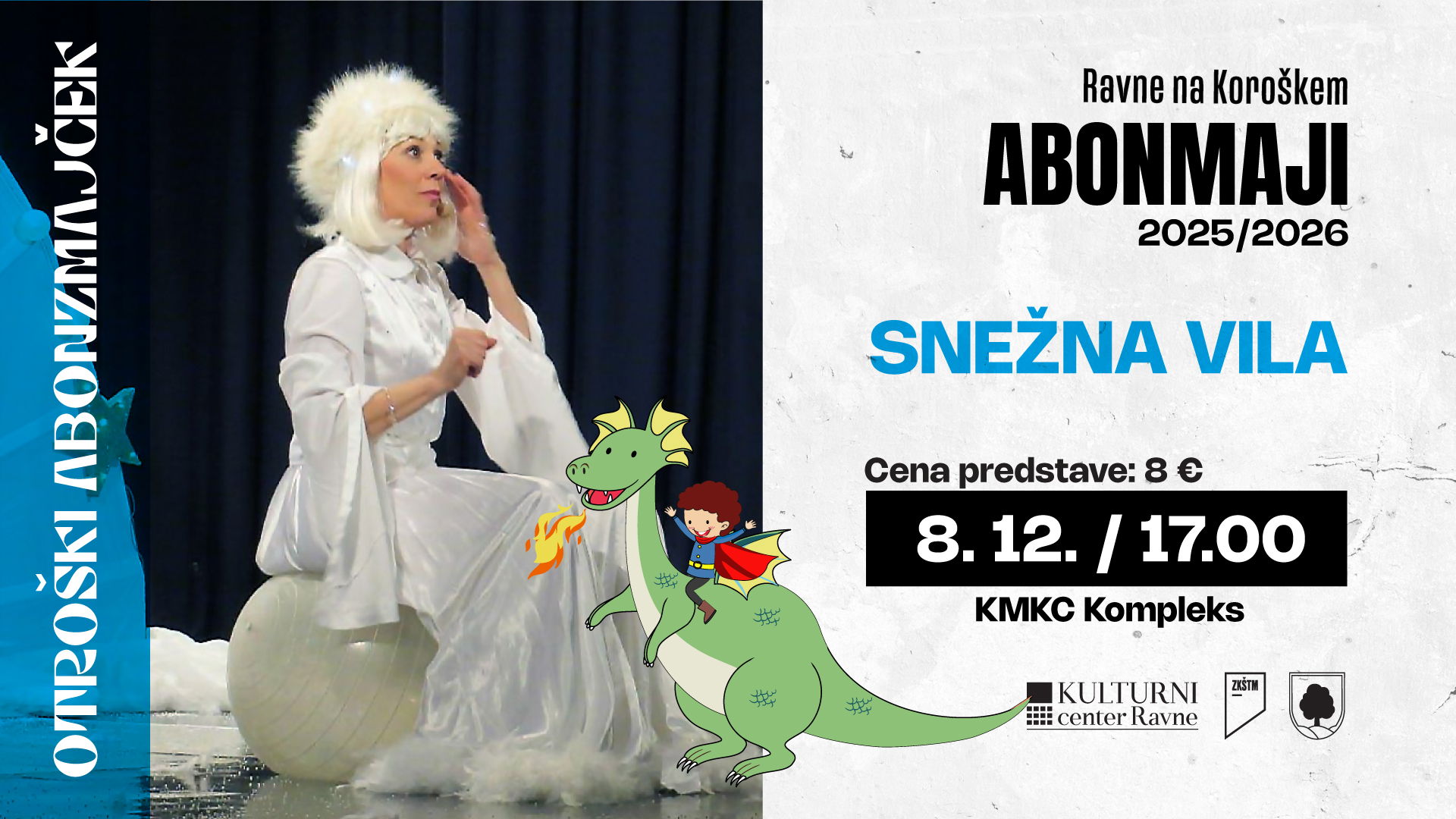 Najlepša klet bo tudi ta mesec gostila naše najmlajše, ki se z velikim zanimanjem spustijo po stopnicah v čudoviti svet Kompleksa. Tokrat jih bo navdušila predstava Snežna vila, ki bo za otroke v ponedeljek, 8. decembra, priklicala snežinke in usvarila čudovito, praznično vzdušje.