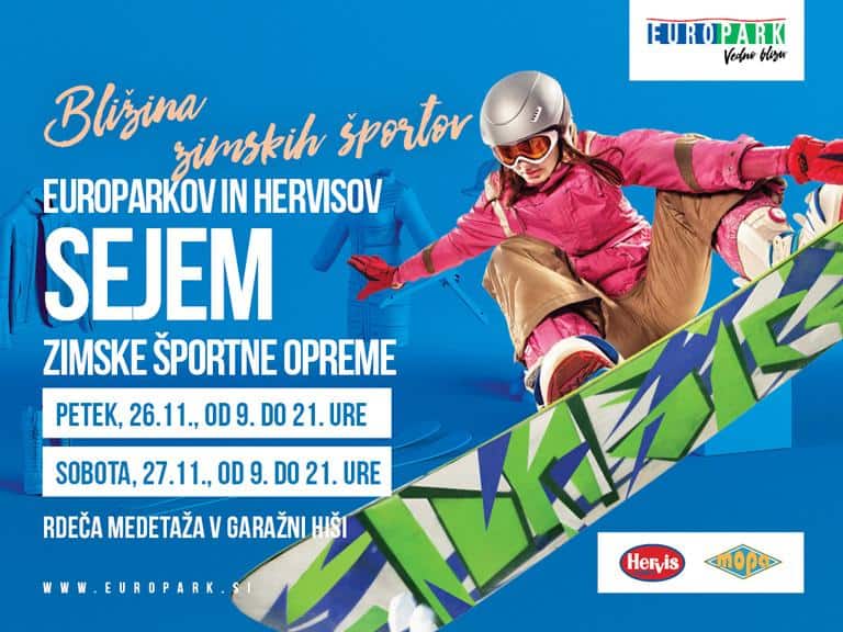 Tudi vi že nestrpno pričakujete, da se boste prvič letos spustili po zasneženih strminah, se podali na pohod po zasneženi pokrajini ali se z drsalkami pognali po zaledenelih površinah? Zdaj je pravi čas, da osvežite svojo zimsko garderobo, preverite stanje svoje zimske športne opreme in jo dopolnite z novimi kosi. Nakupovalno središče Europark Maribor in trgovina Hervis namreč v petek in soboto, 26. in 27. novembra, v rdeči medetaži Europarkove garažne hiše pripravljata sejem nove in rabljene zimske športne opreme, kjer boste našli vse, kar potrebujete za nepozabne zimske radosti. Pravila sodelovanja najdete TUKAJ.