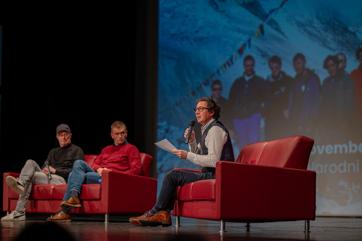 V nabito polni Veliki dvorani Narodnega doma Mežica so v pogovoru, ki ga je vodil Peter Mikša, spomine na to izjemno odpravo obujali Matej Flis, Tadej Golob, dr. Jurij Gorjanc in Drejc Karničar, brat pokojnega Dava Karničarja.