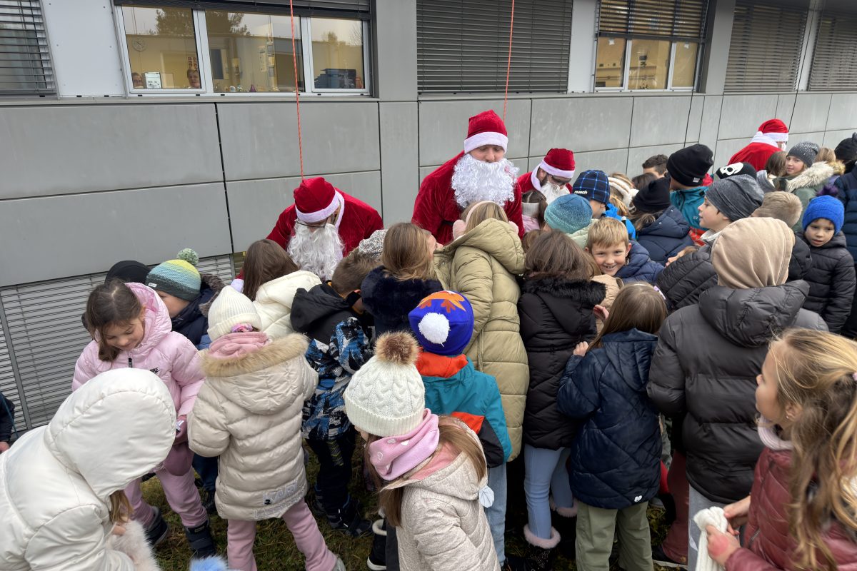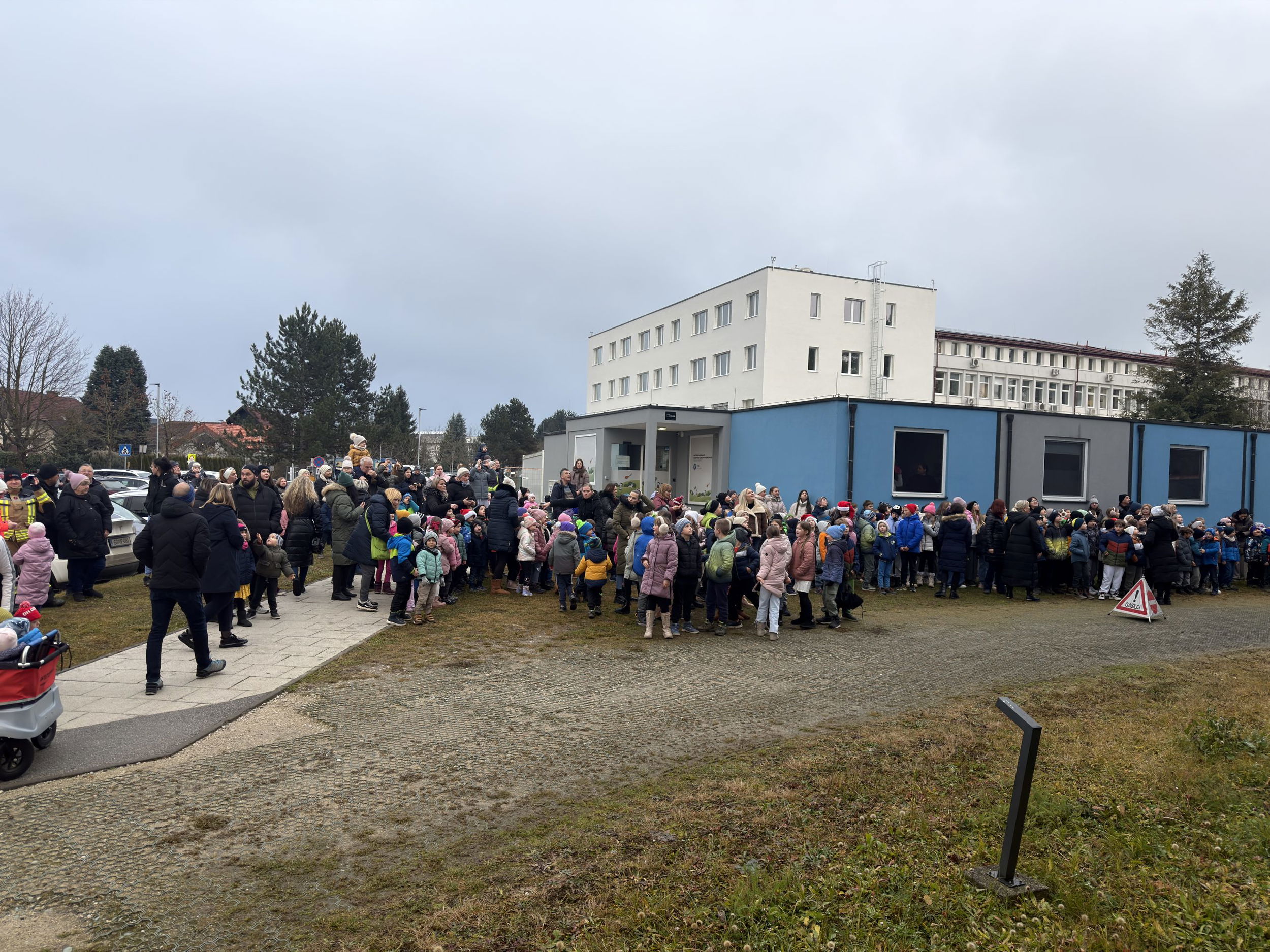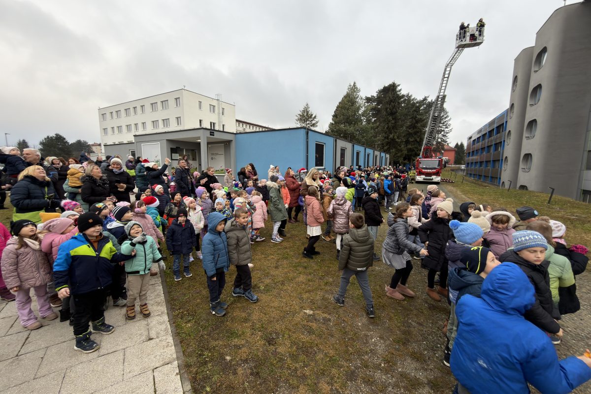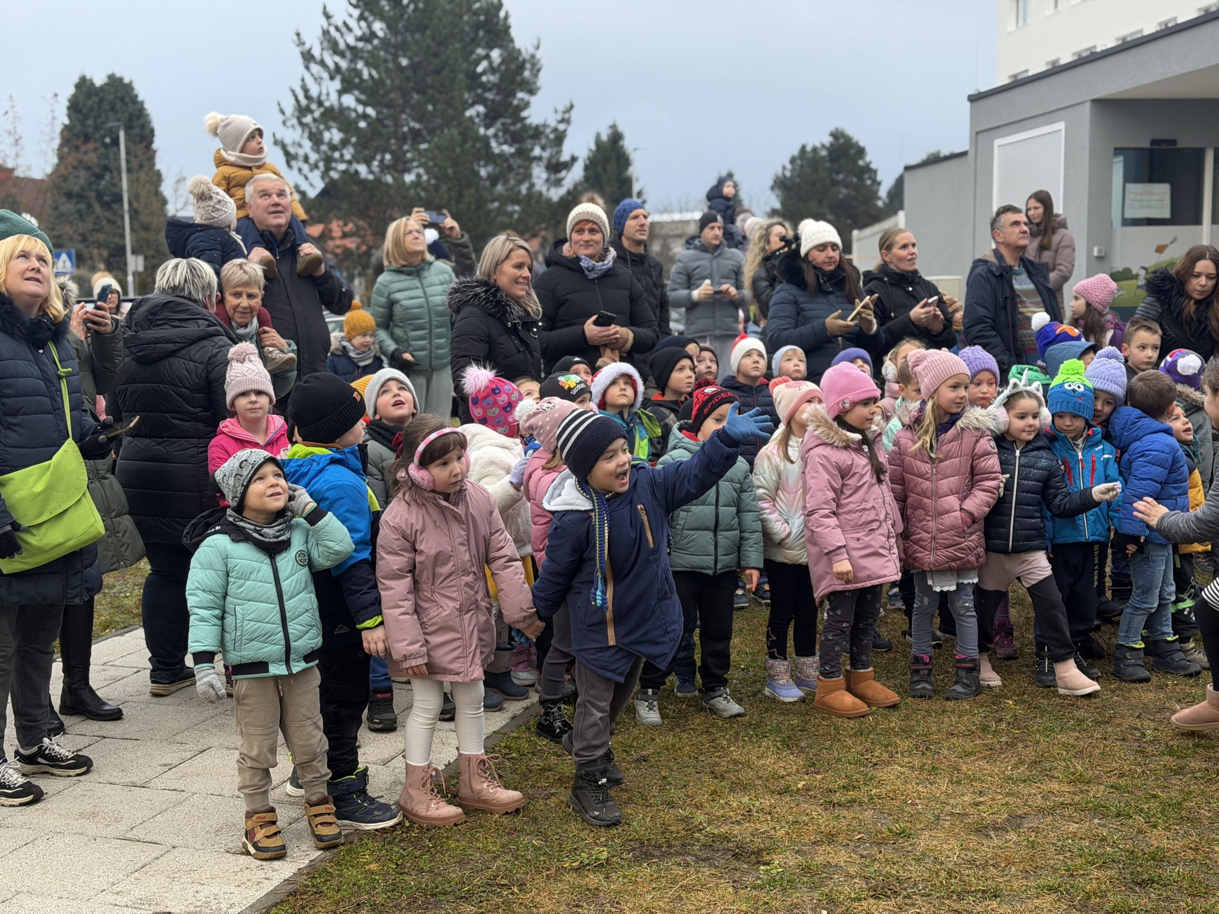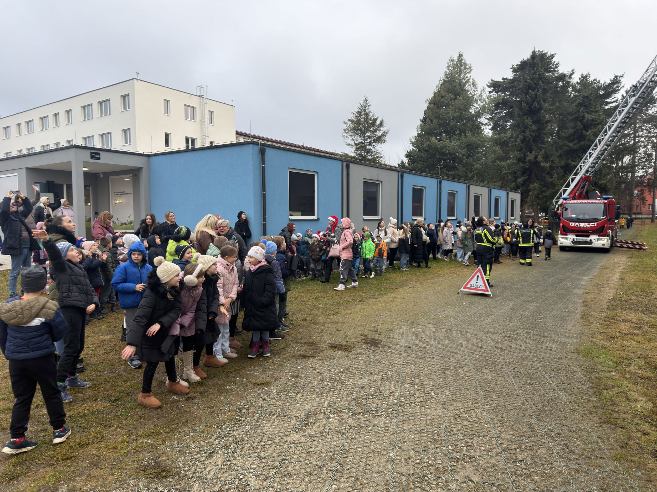 Pred bolnišnico se je zbralo lepo število gledalcev, ki so z navdušenjem opazovali pogumne Božičke pri njihovem veličastnem prihodu. Ti so med otroke razdelili bonbone in tople besede.