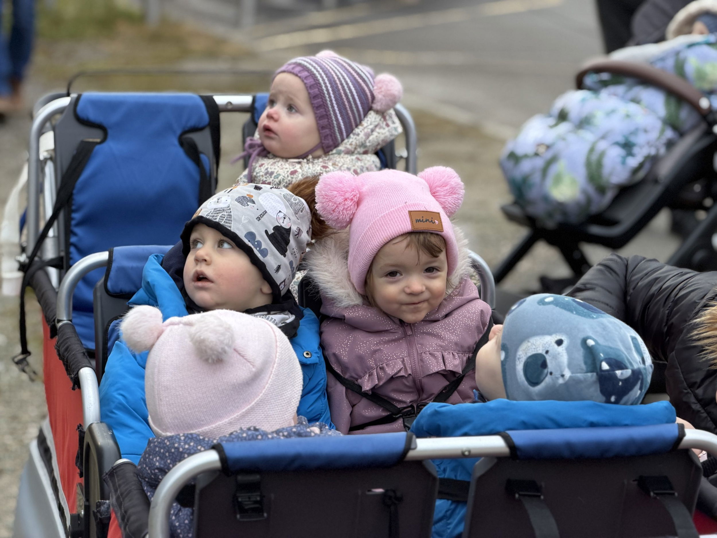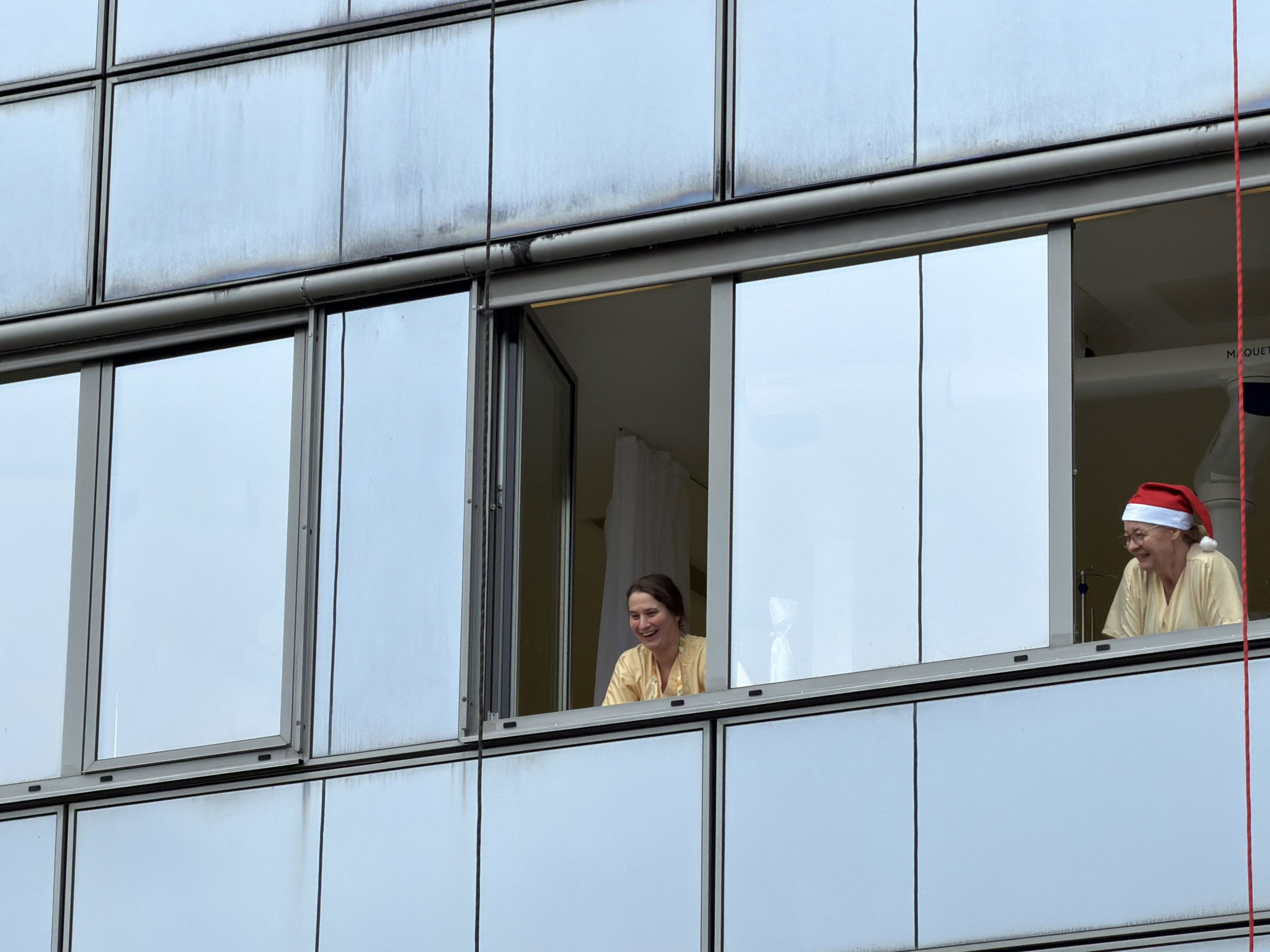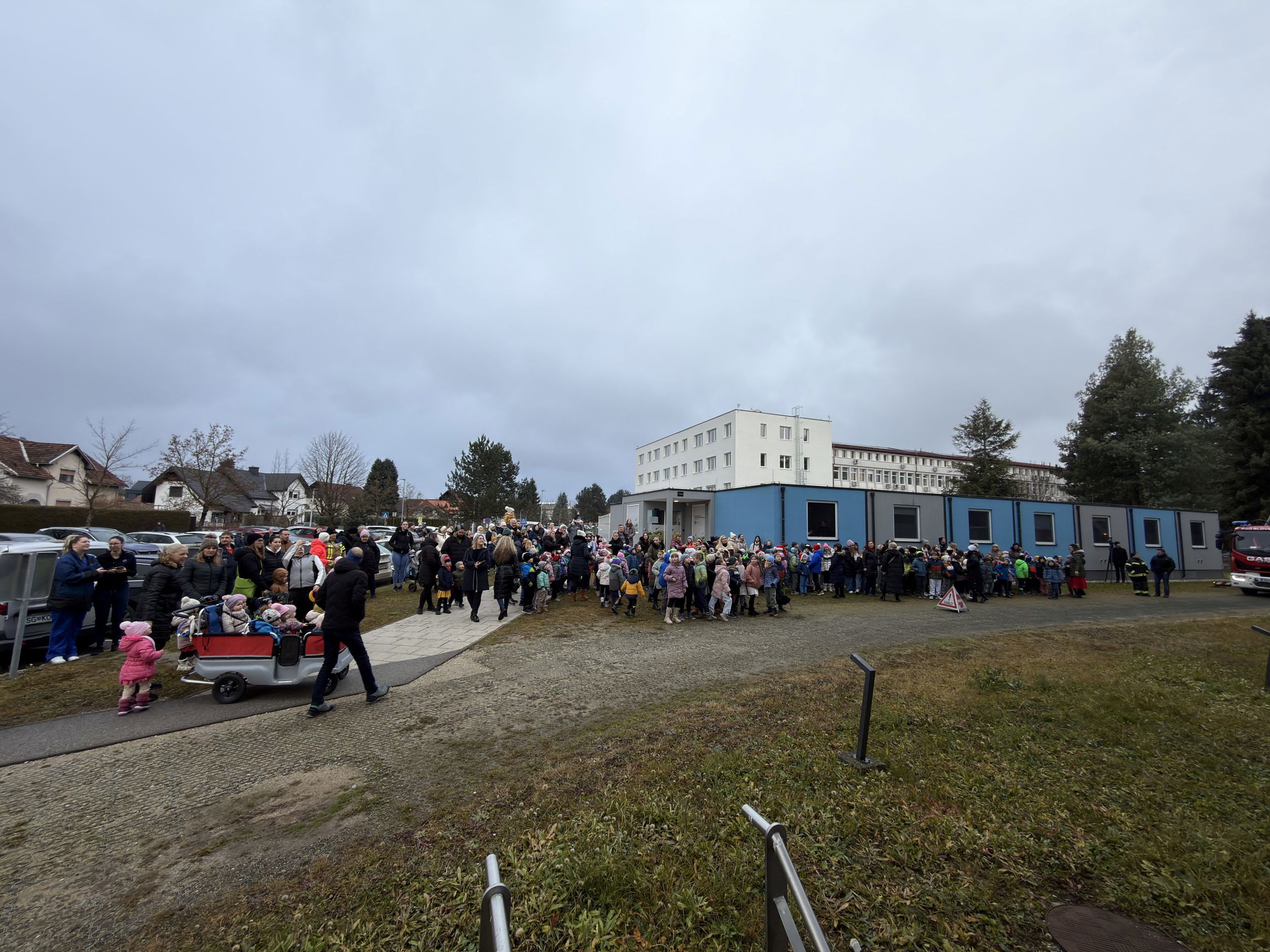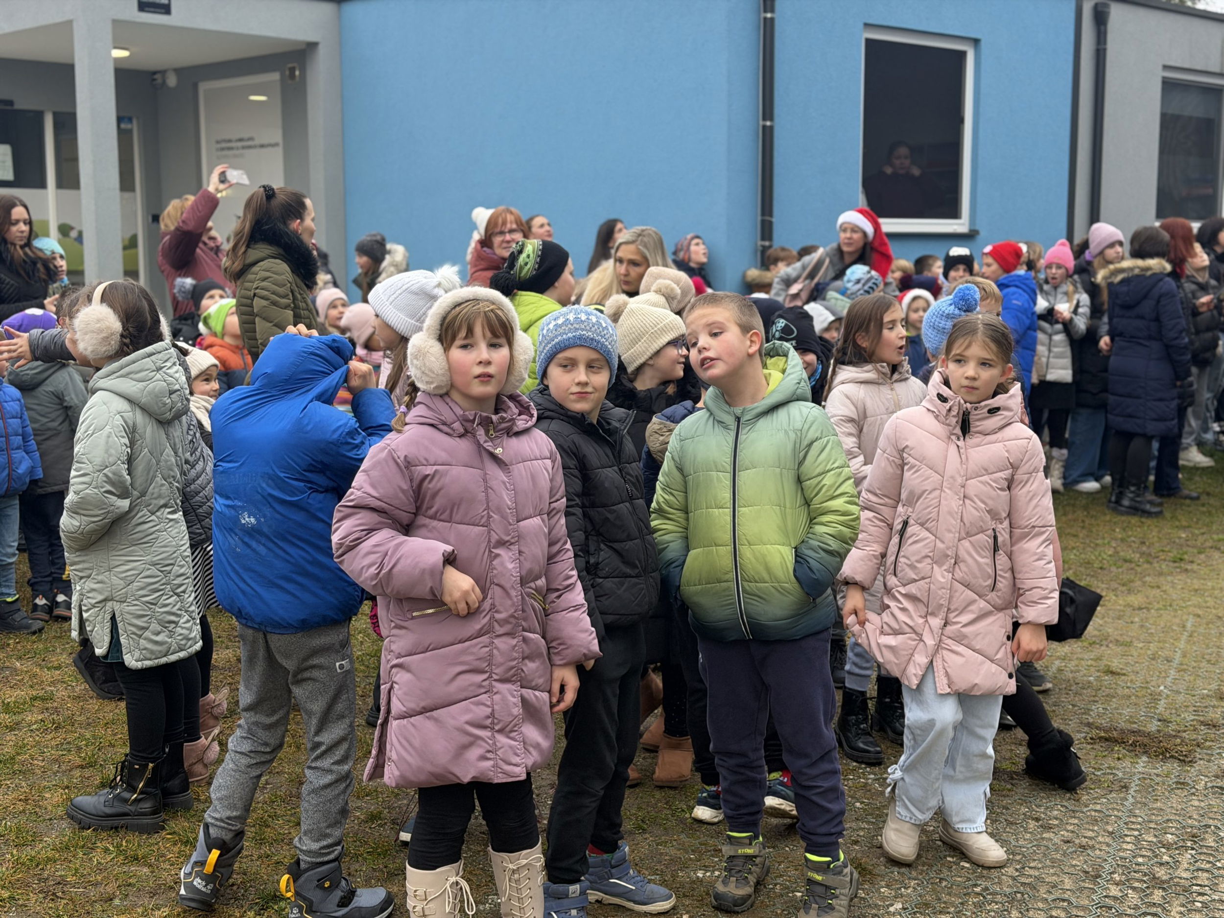 Pred bolnišnico se je zbralo lepo število gledalcev, ki so z navdušenjem opazovali pogumne Božičke pri njihovem veličastnem prihodu. Ti so med otroke razdelili bonbone in tople besede.