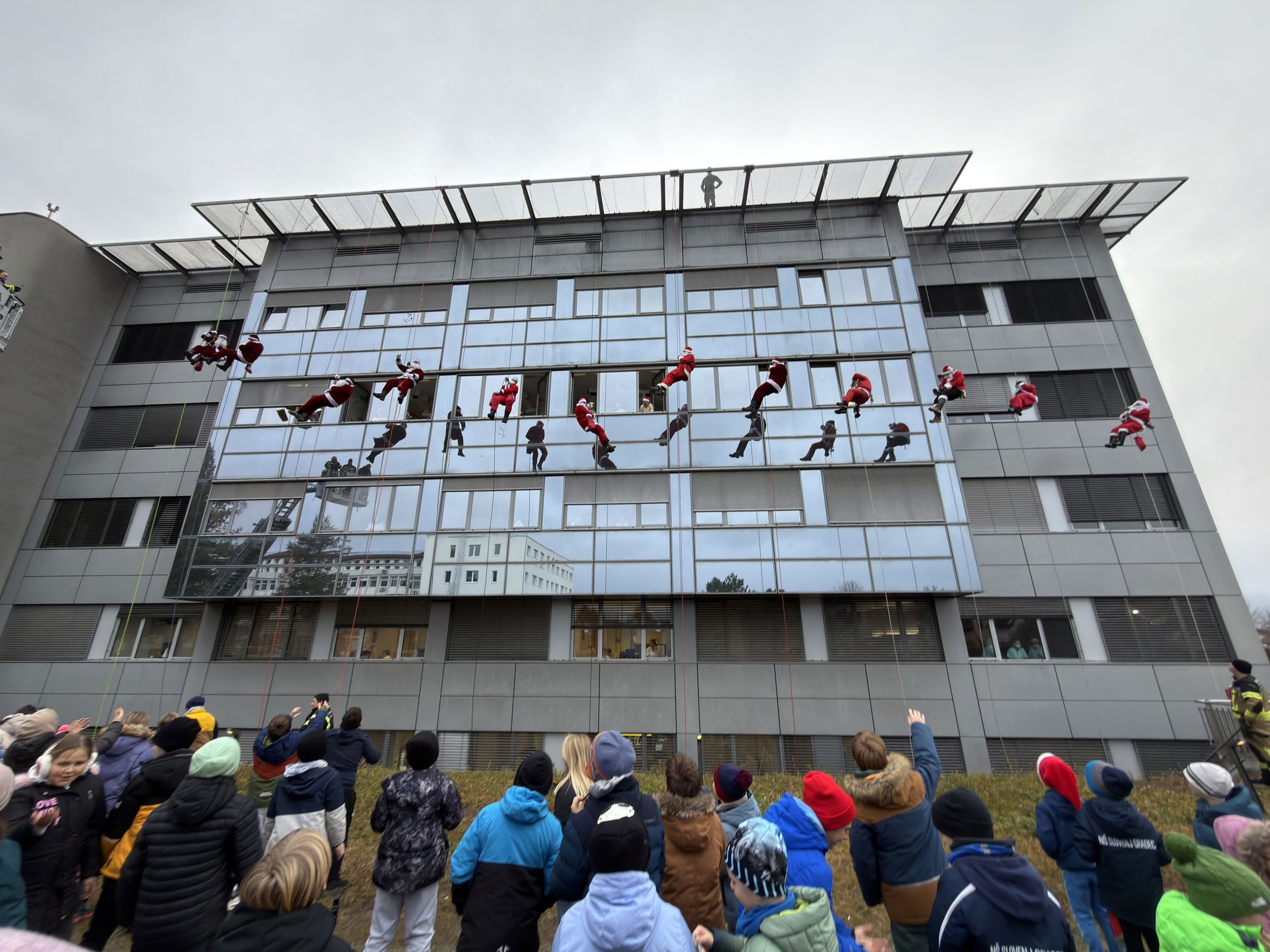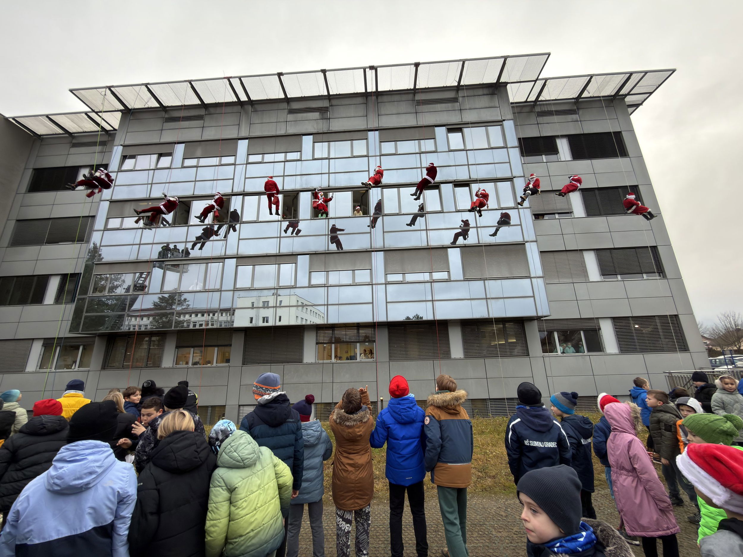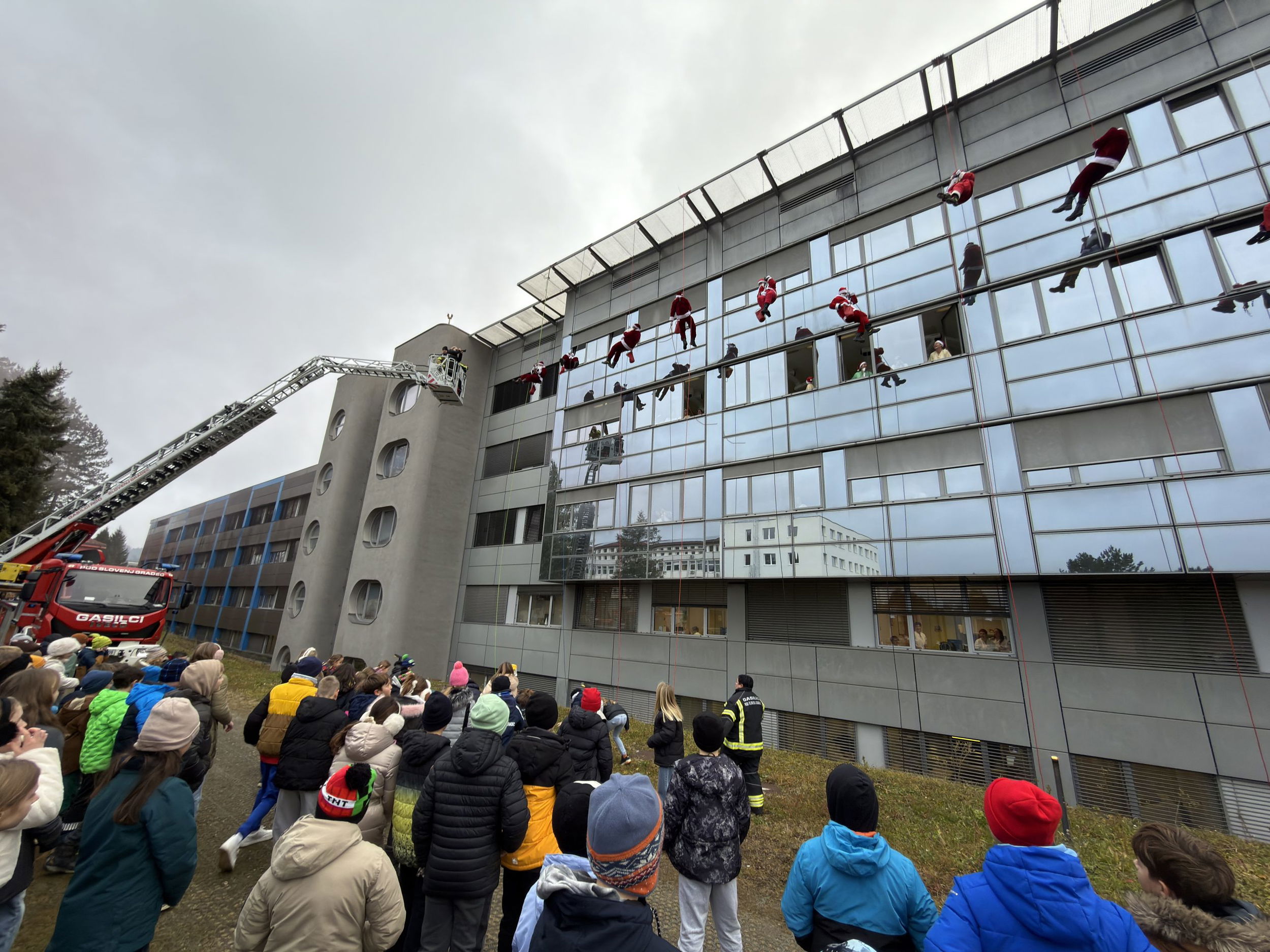 Danes, 23. decembra, je Splošna bolnišnica Slovenj Gradec spet gostila prav poseben praznični dogodek – spust Božičkov.