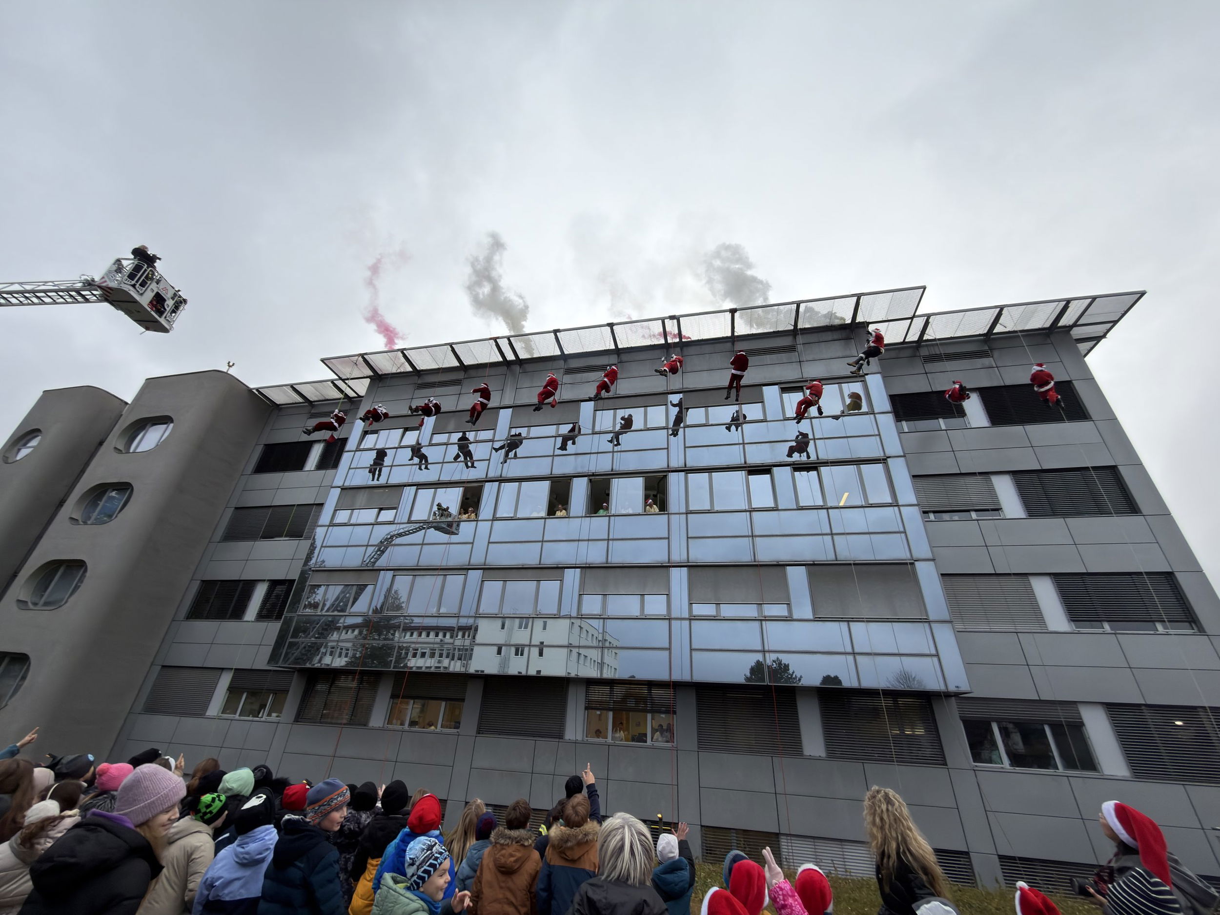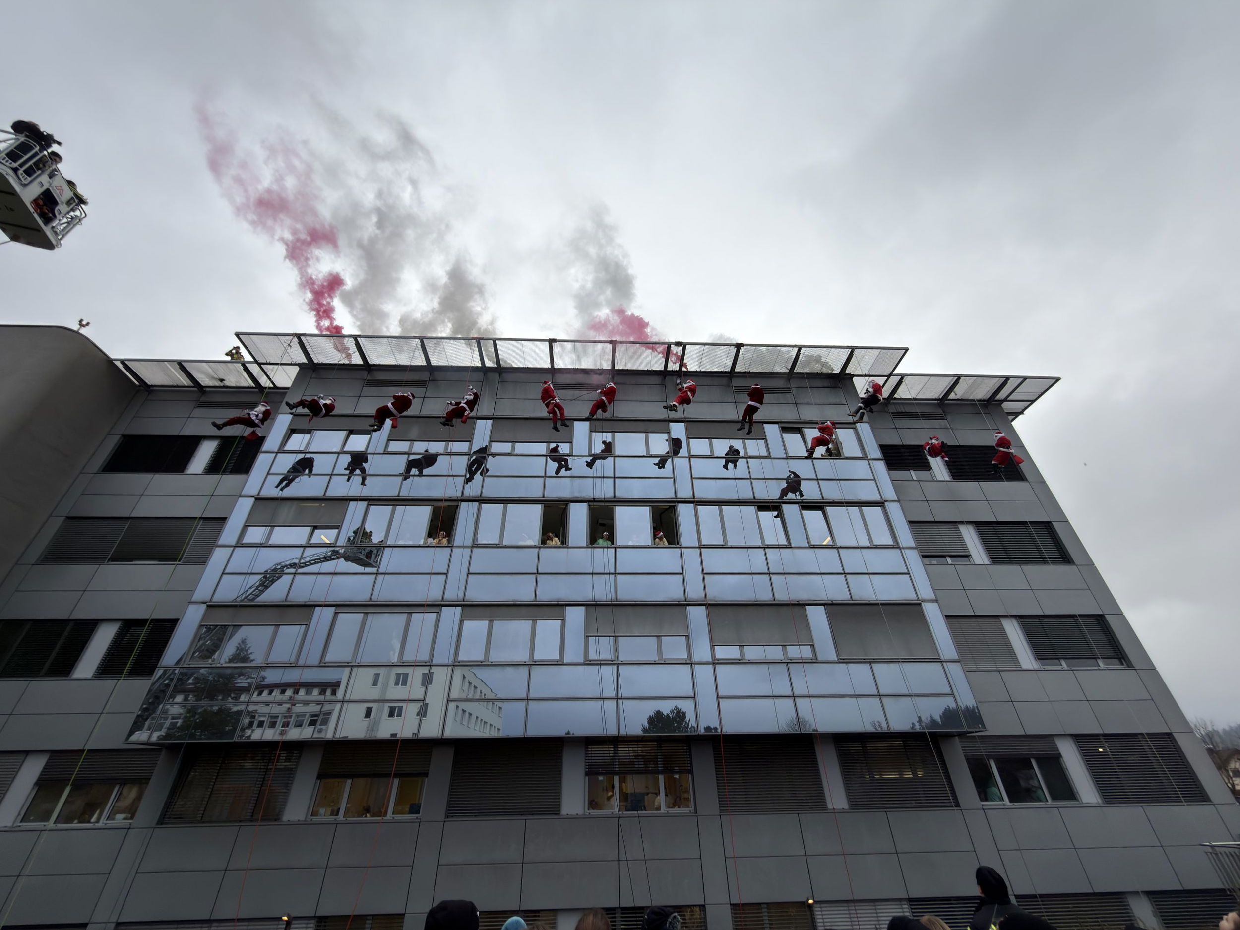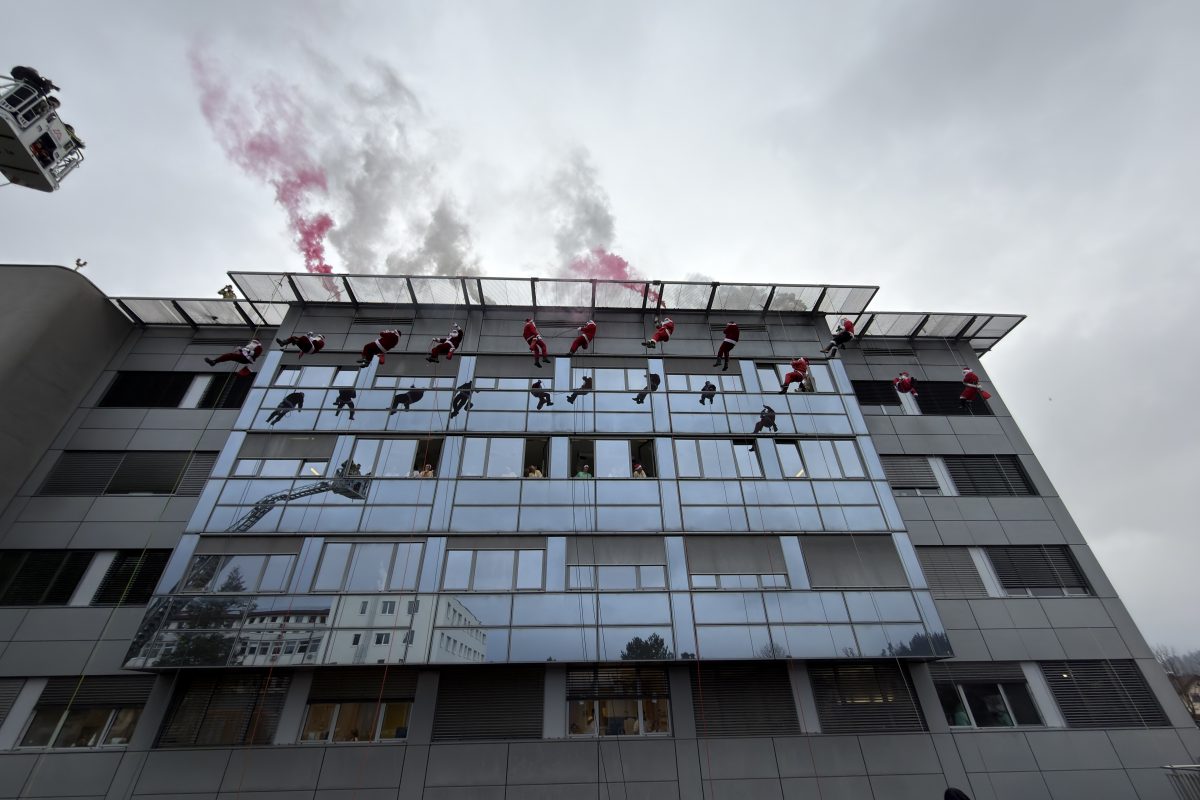 Danes, 23. decembra, je Splošna bolnišnica Slovenj Gradec spet gostila prav poseben praznični dogodek – spust Božičkov.