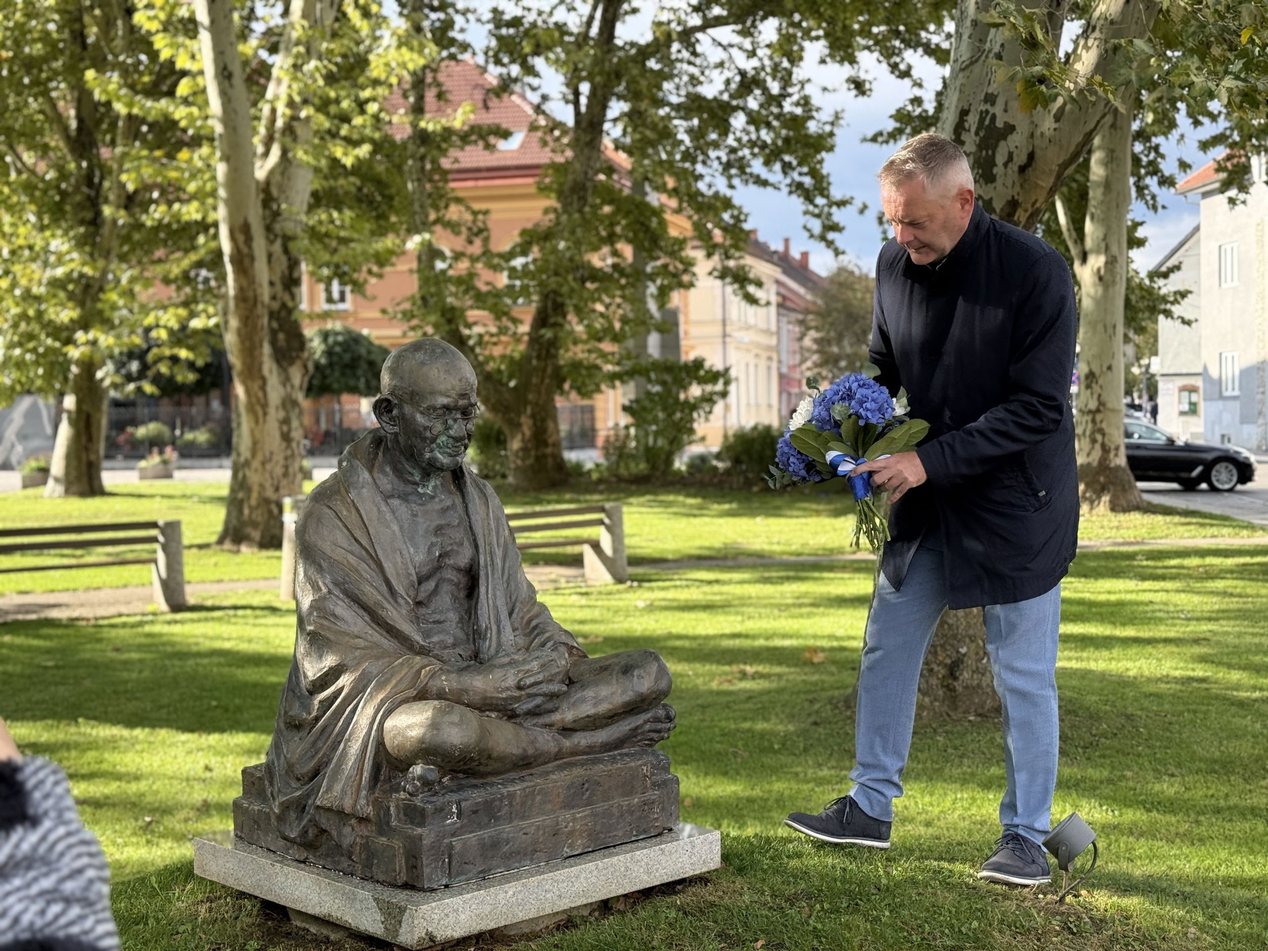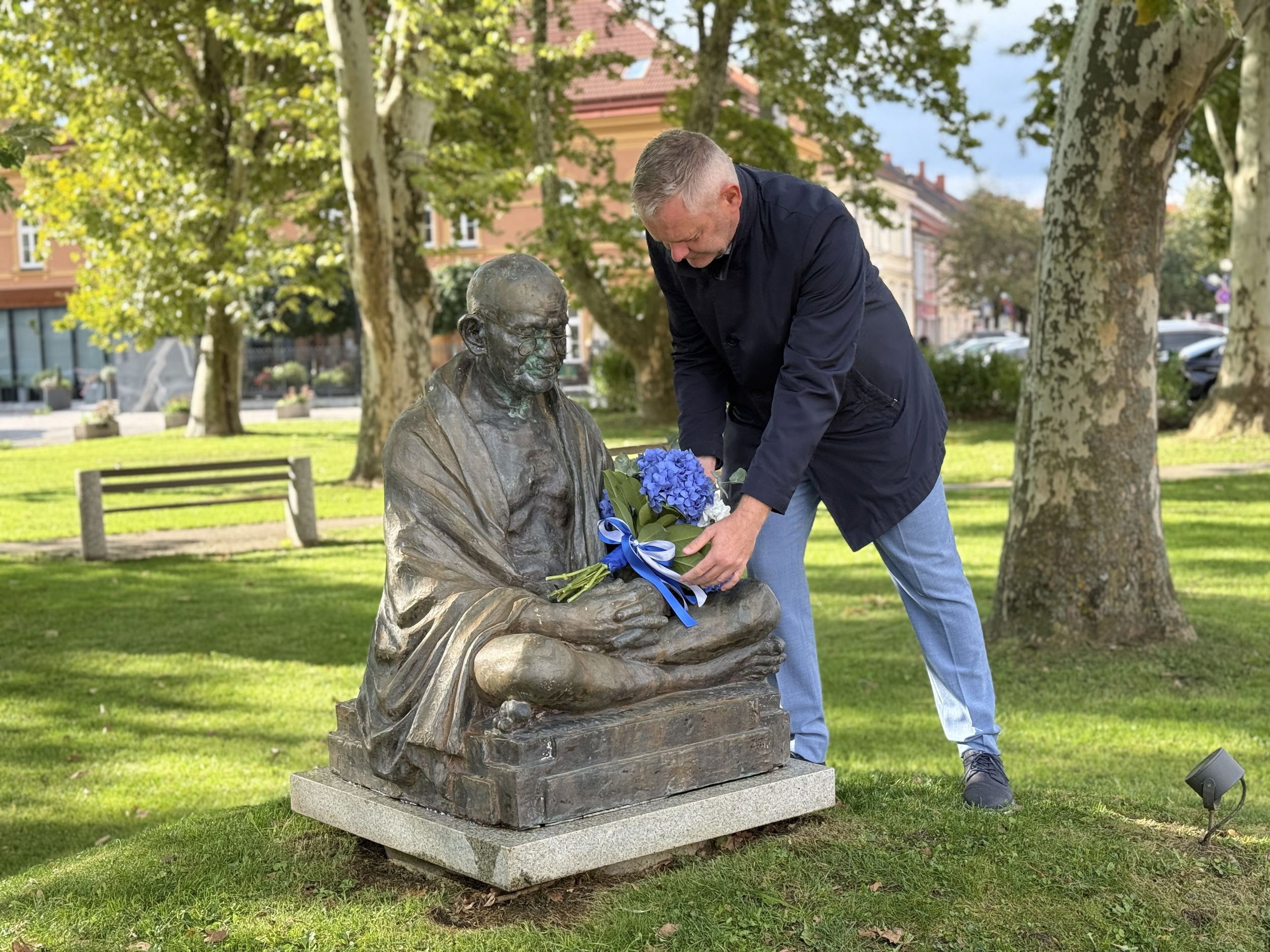 Slovenj Gradec je danes gostil veleposlanika Indije v Sloveniji, njegovo ekscelenco Amit Naranga. Obisk je sovpadal z obletnico rojstva indijskega voditelja Mahatme Gandija, ki je v mestu že dolgo simbol miru in nenasilja.