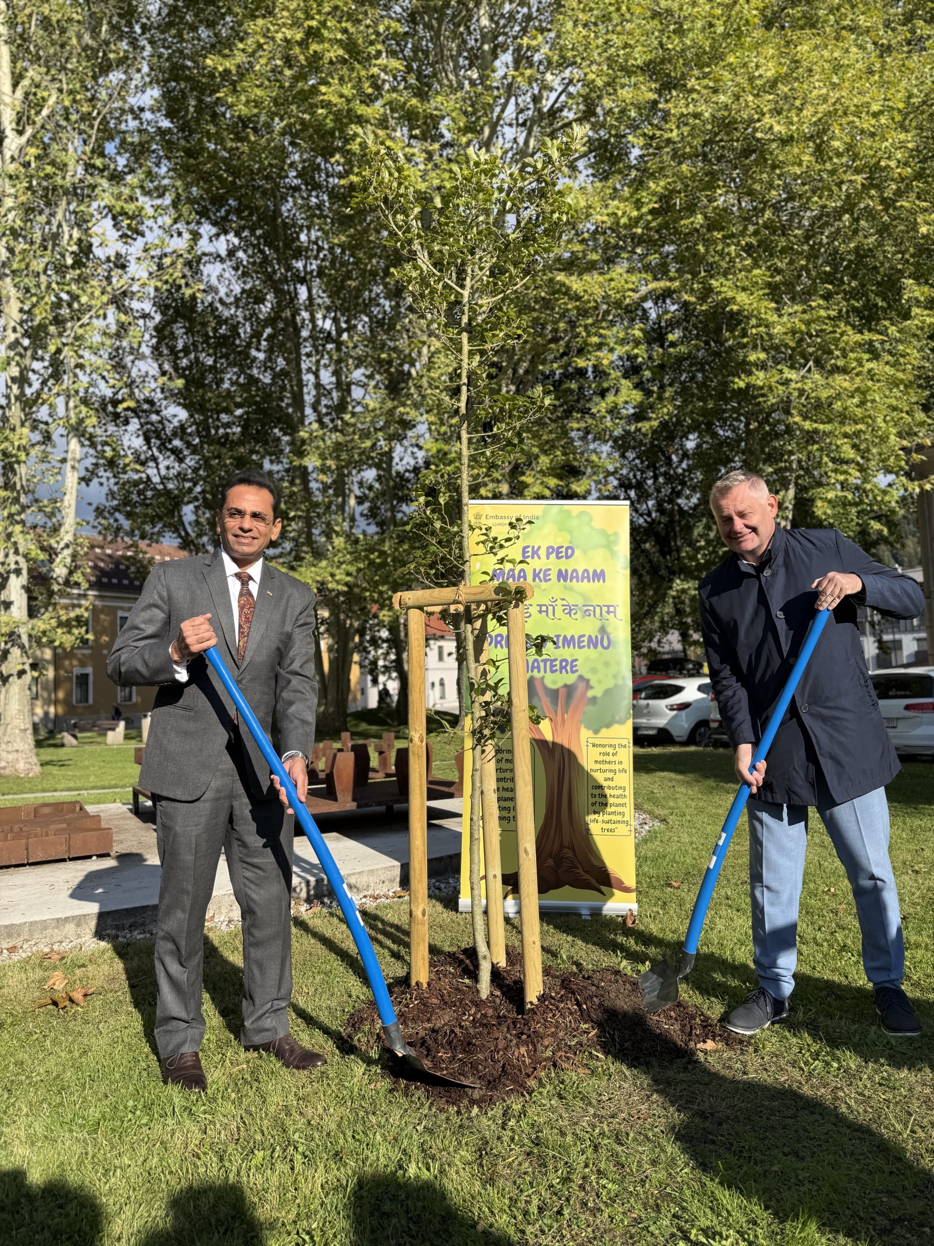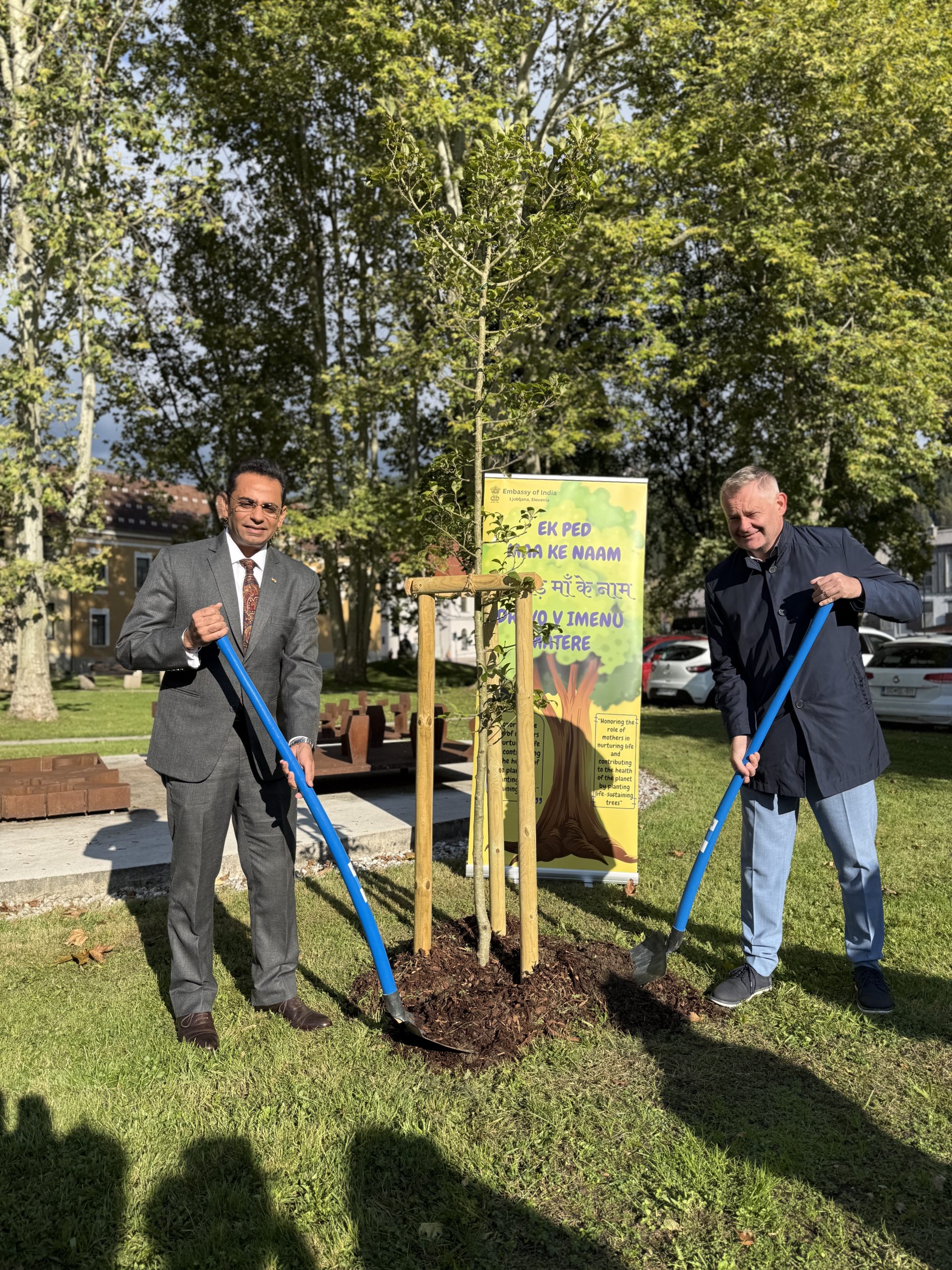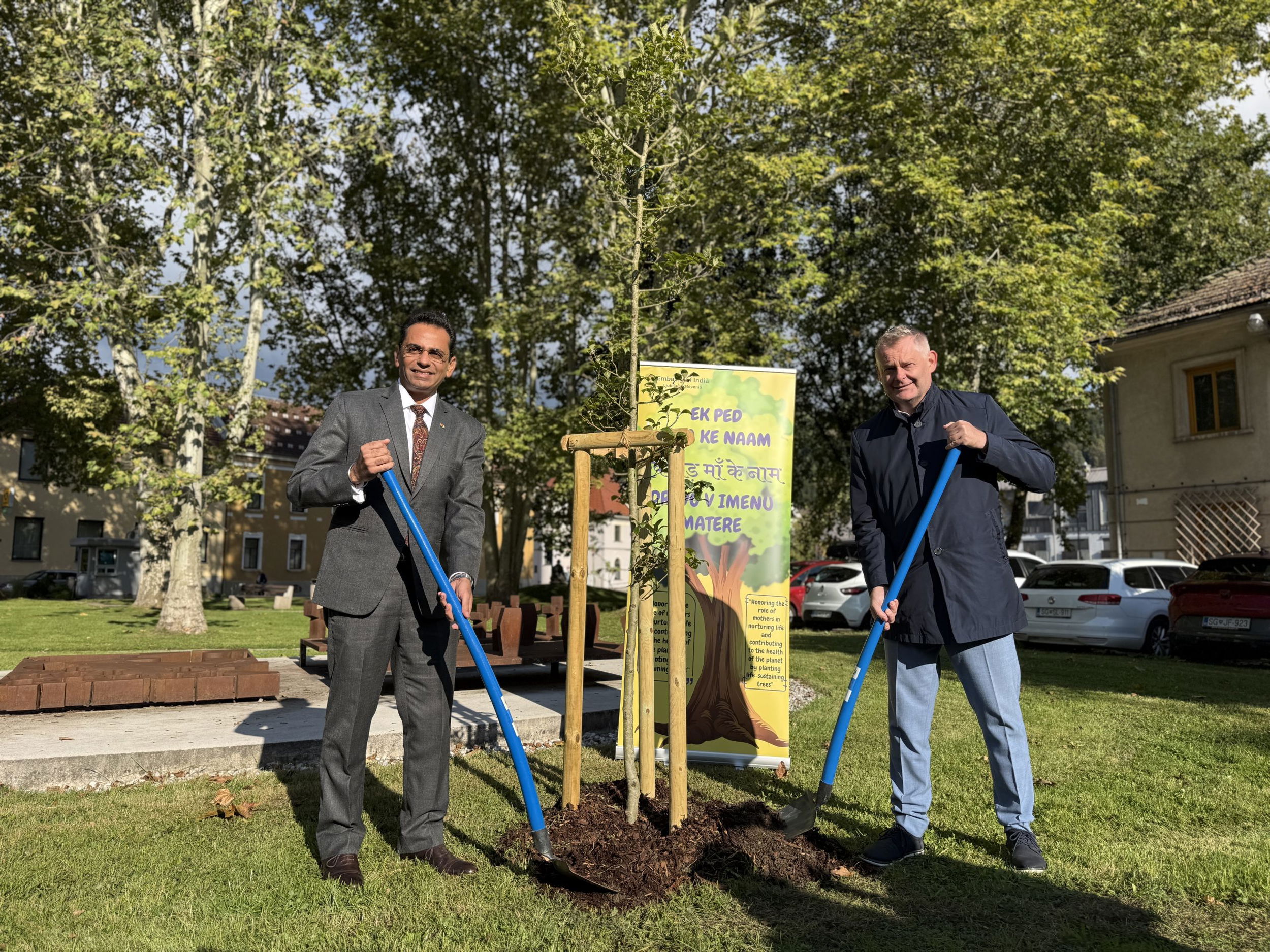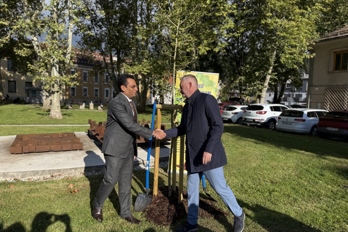 Obisk so pričeli ob 9.30 v parku pri Gandijevem spomeniku, kjer je veleposlanik položil cvetje, v znak prijateljskih vezi med državama je nato skupaj z županom Tilnom Kluglerjem zasadil tudi drevo, ki bo simbolično povezovalo Slovenijo in Indijo. Izrazil je veselje, da lahko skupaj obeležijo rojstni dan Mahatme Gandija, ki se obeležuje tudi kot mednarodni dan nenasilja. “Mahatma Gandhi ima posebno povezavo s Slovenj Gradcem, je neke vrste ‘občan’ mesta, saj je tukaj že več let in združuje Indijo ter Slovenijo s prijateljsko vezjo in skupnimi vrednotami,” je veleposlanik poudaril v nagovoru. Da bo zasajeno drevo nov simbol mesta miru in prijateljskega odnosa med dvema državama, je še izpostavil.