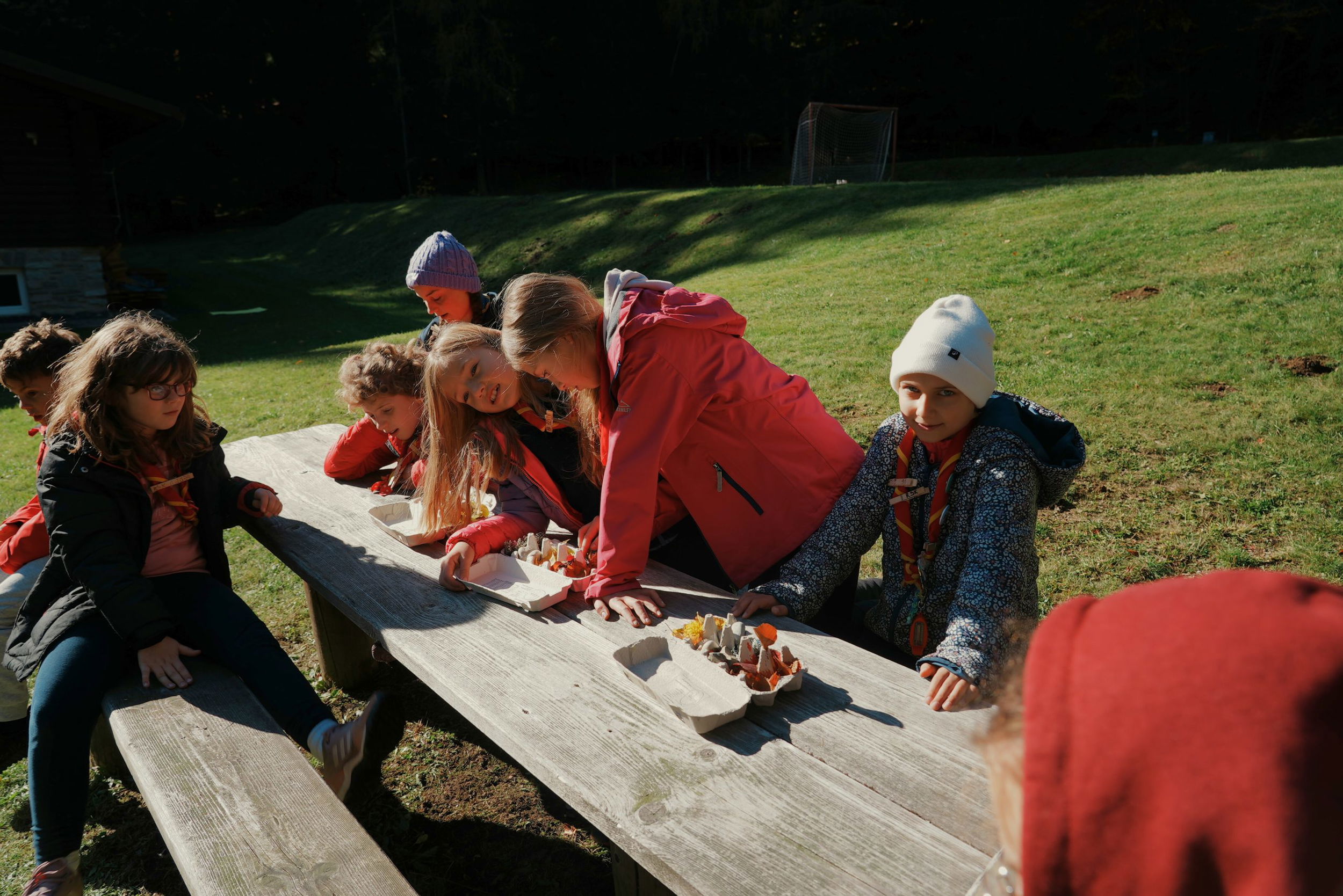 Popoldne je bilo ustvarjalno in razigrano. Mlajši so izdelovali strašne in smešne buče, pletli zapestnice, starejši pa so se medtem preizkusili v lokostrelstvu, šivanju ter skupinskem izzivu sodelovanja in preživetvenega znanja. Zrak je medtem zajel vonj po pečenem kostanju in golažu, ki se je kuhal na odprtem ognju.
