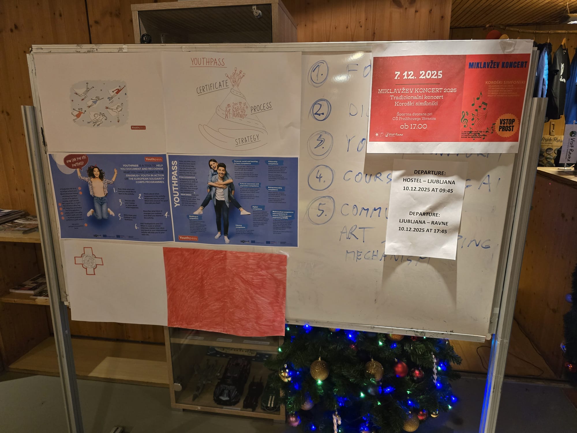 Različna društva in organizacije, predvsem na Ravnah in v okolici so aktivno sodelovale pri organizaciji številnih delavnic mladinske izmenjave, ki jih je vodila mladinska delavka Tjaša Gorenc: mladi so se med drugim preizkusili v peki štrudla v Koroškem medgeneracijskem centru, odkrivali mesto, prisluhnili delavnici na temo umetne inteligence Dogs4motion (Primož Gams je organiziral zelo poučno delavnico), imeli športni dan v športnem centru Ravne, se prepustili meditaciji Tjaše Gorenc, odkrivali čare Pece na avstrijski strani (obiskali so najvišje ležeči božični sejem), se udeležili dogodka ”Miklavžev tek po cik caku”, v prostem času so se nekateri mladi spustili po najdaljši jeklenici v Sloveniji ter obiskali druge kraje po Sloveniji – ekskurzija v praznično, predbožično Ljubljano. Obiskal jih je tudi Miklavž.