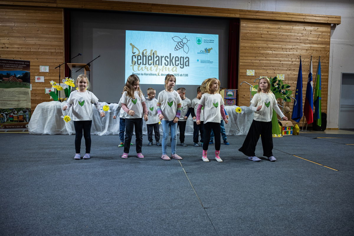 V uvodu so prisluhnili otrokom iz Vrtca Ravne, enote Levi Devžej Kotlje, ki so jih popeljali v njihov majhen svet čebel.