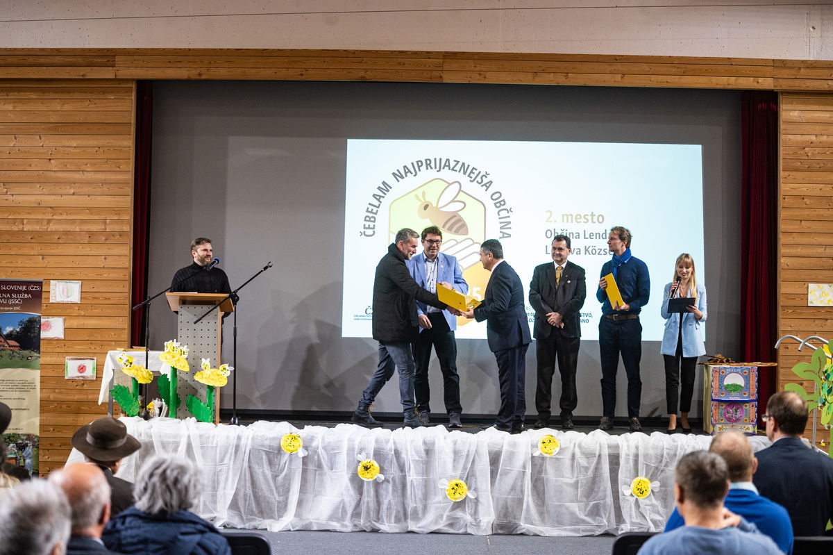 Priznanja sta podelila predsednik Čebelarske zveze Slovenije in Evropske čebelarske zveze Boštjan Noč in Rok Piletič in tako razglasila čebelam najprijaznejšo občino za leto 2025.