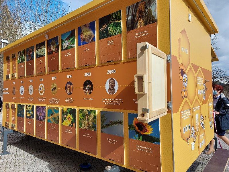 Na drugi strani paviljona so na časovnem traku predstavljeni poudarki o zgodovini čebelarstva. Tradicionalnost slovenskega čebelarstva je prikazana s poslikavo panjskih končnic in pročelji panjev AŽ. Najmlajši pa bodo lahko prek didaktičnih iger spoznavali ključne posebnosti o čebelah, so pojasnili v ČZS.