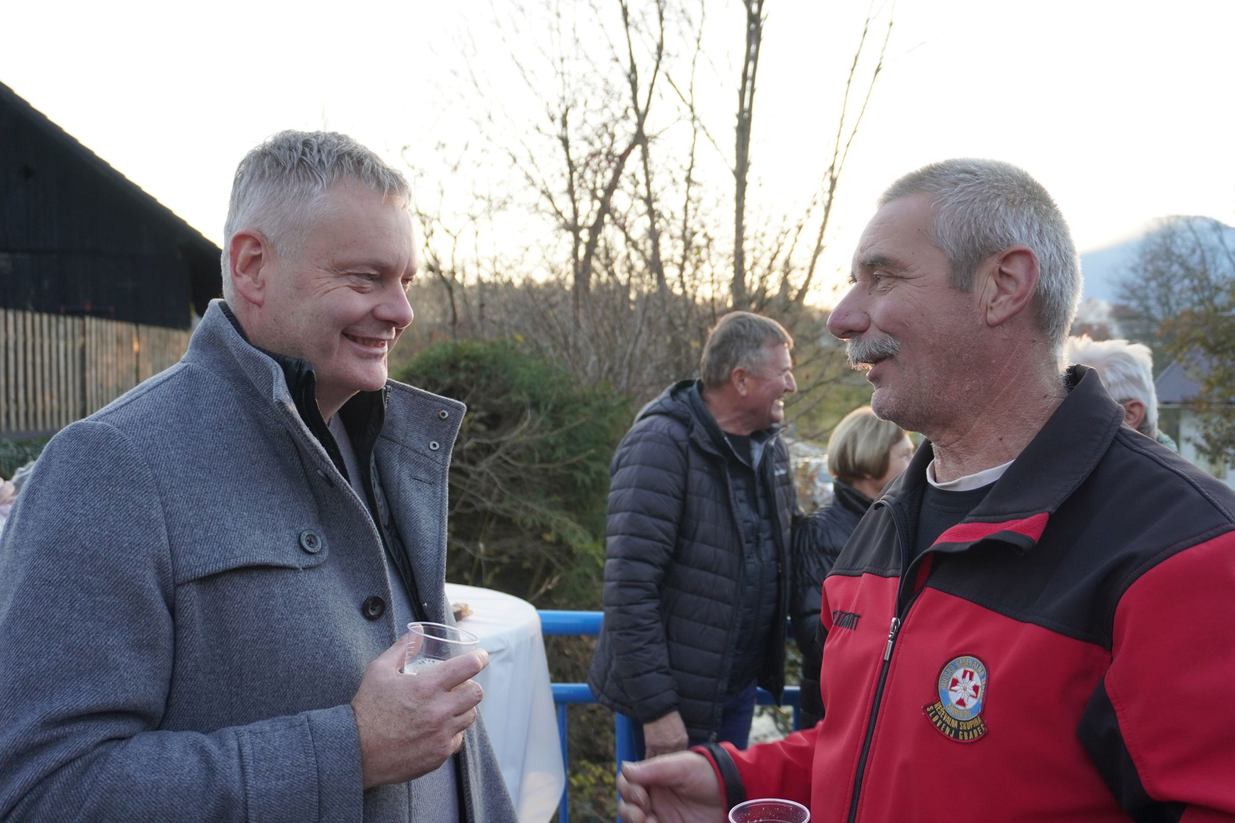 Zbrane je uvodoma nagovoril predsednik Mestne četrti Legen-mesto, Jože Knez. Sedanji svet Mestne četrti je že ob svoji izvolitvi investicijo v tukajšnjo cesto postavil na prioritetno mesto. Mestna občina, projektanti in izvajalci so po usodnem avgustu 2023 cesto profesionalno in hitro umestili v prostor, upoštevajoč mnenja in predloge tukajšnjih prebivalcev, za kar se jim na tem mestu zahvaljujem. Tako imamo danes tukaj po dveh letih cesto, ki omogoča tukajšnjim krajanom varen dostop in opravljanje gospodarske dejavnosti, prebivalcem domačij pod njimi pa miren spanec, vedoč, da pobočje ne more zdrsniti na njihove posesti,” je ob otvoritvi saniranega odseka dejal Jože Knez.