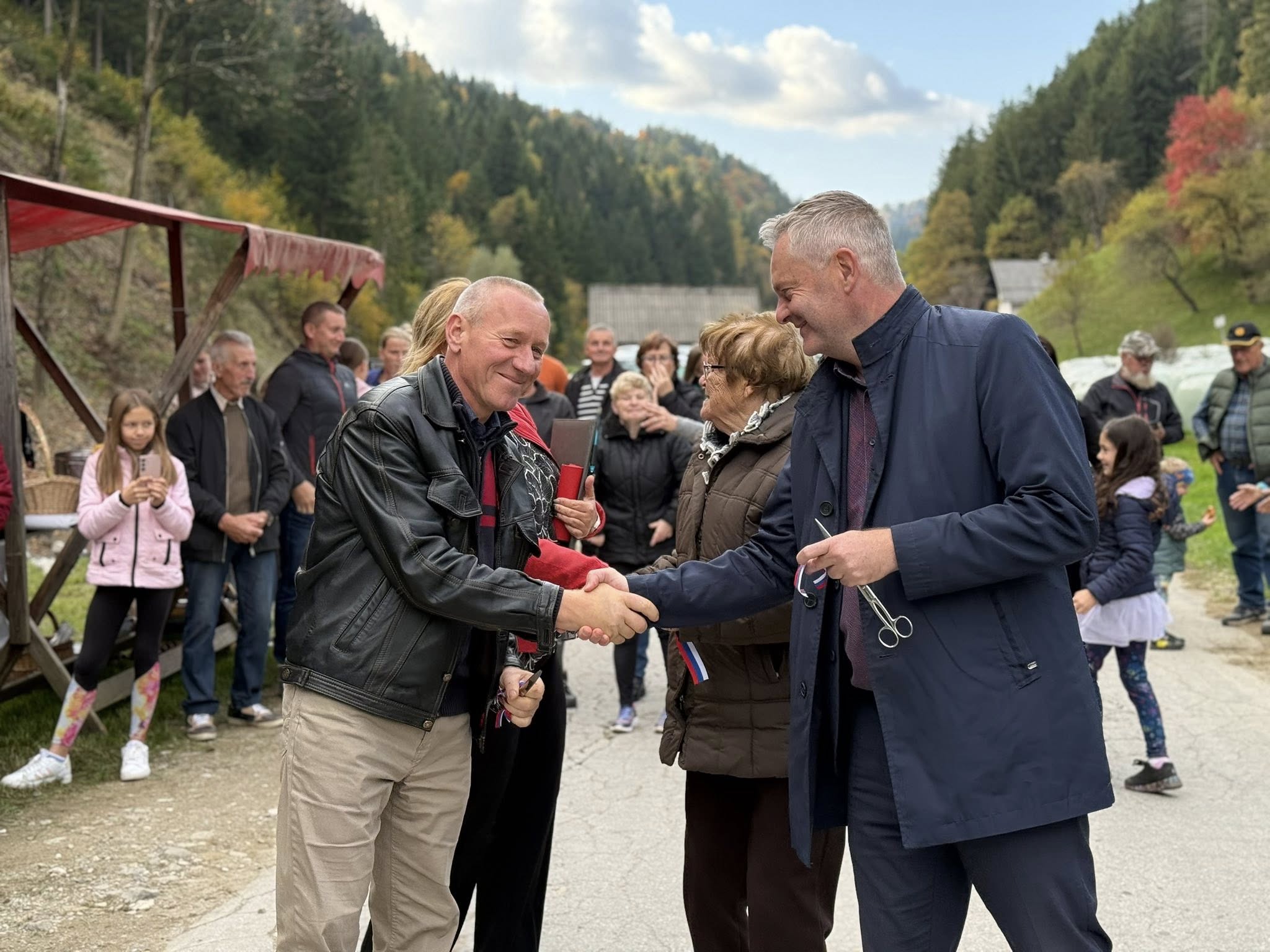 Simbolični prerez traku je pripadel najstarejši krajanki, 88-letni Micki, ki je s prisrčnim nasmehom odprtje pospremila z besedami hvaležnosti za ponovno vzpostavljeno povezavo.