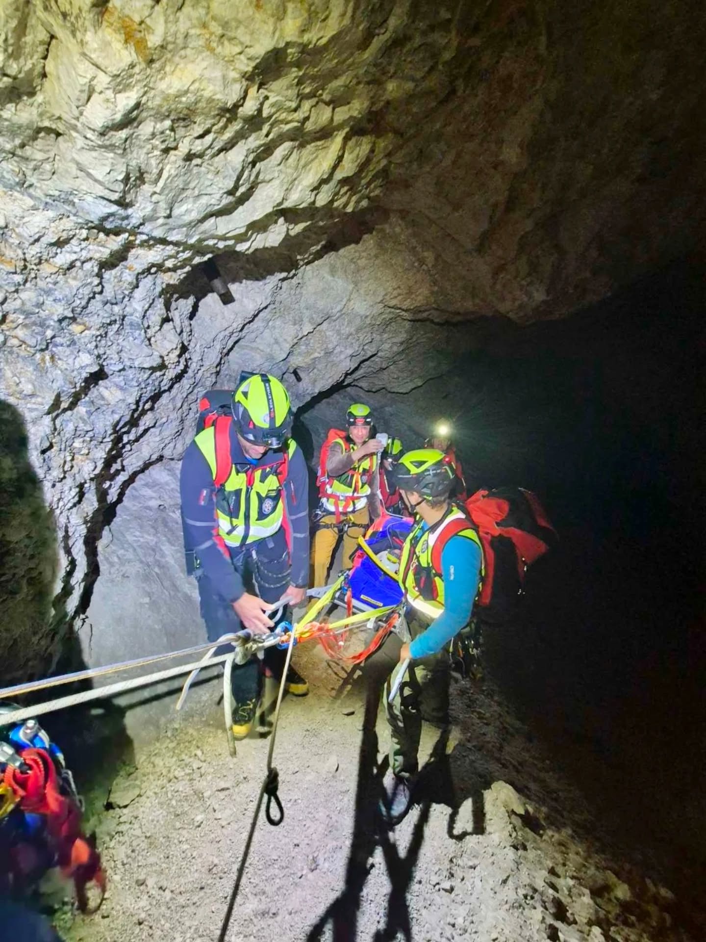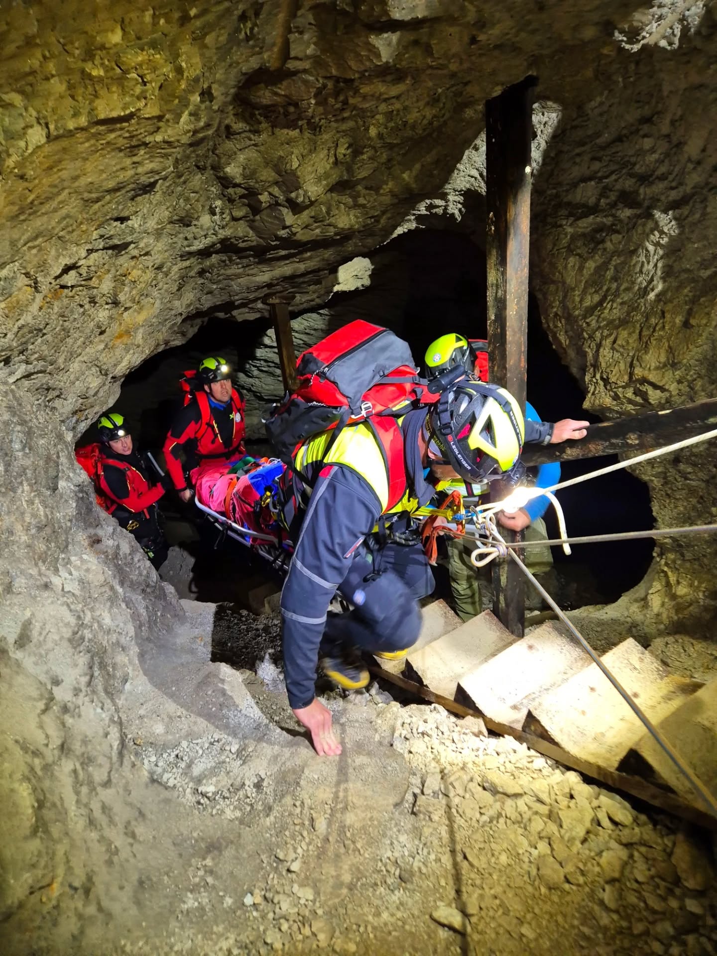 Na pomoč so priskočili gorski reševalci, ki so s pomočjo vrvne tehnike in posebne opreme za transport poškodovanih v ozkih prostorih osebo varno prenesli skozi rudniške rove na površje. Zaradi zahtevnih pogojev in omejenega prostora je bila intervencija tehnično zelo zahtevna, vendar je potekala uspešno in varno.