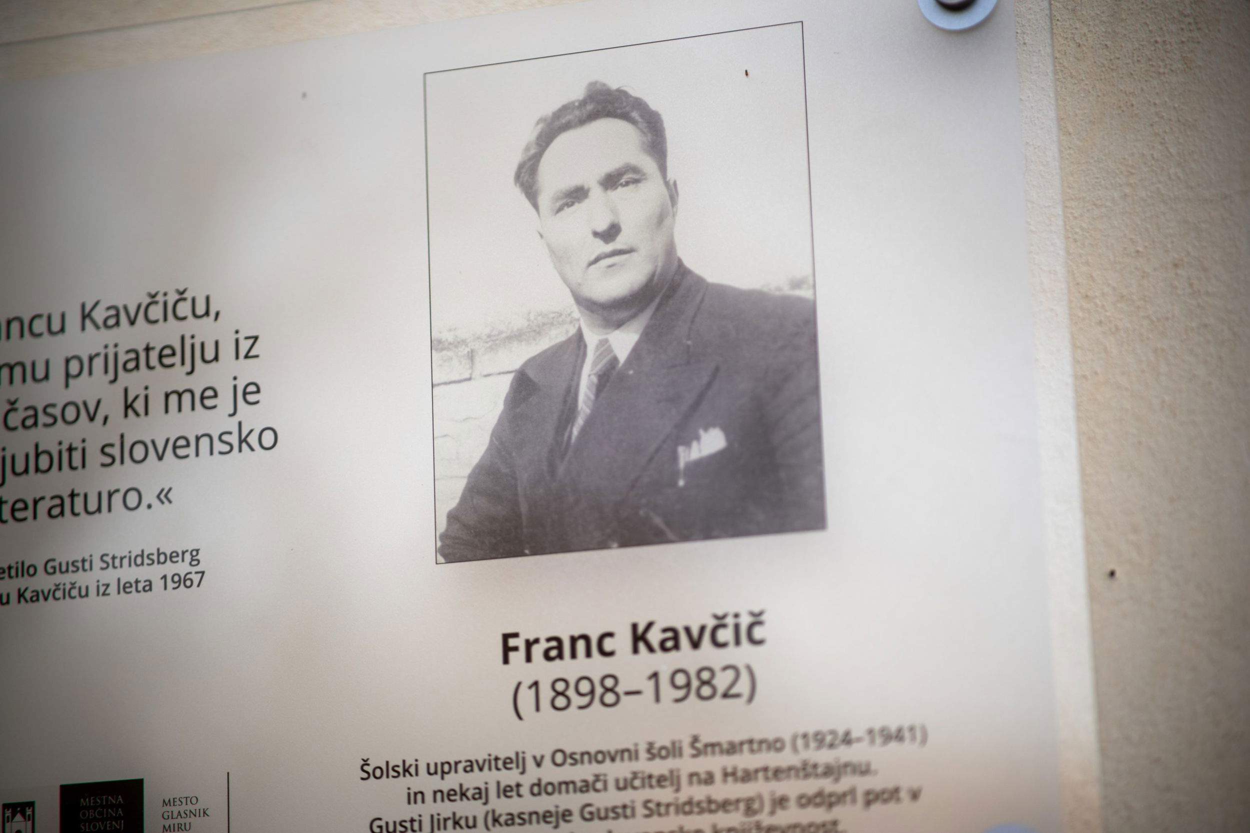 Pred Osnovno šolo Šmartno pri Slovenj Gradcu so v četrtek, 6. novembra, slovesno odkrili spominski plošči, posvečeni Gusti Stridsberg, nekdanji lastnici posesti Hartenštajn ter publicistki, pisateljici in prevajalki, ter Francu Kavčiču, dolgoletnemu upravitelju šole, ki ji je pomembno odprl pot v slovenski jezik in književnost.