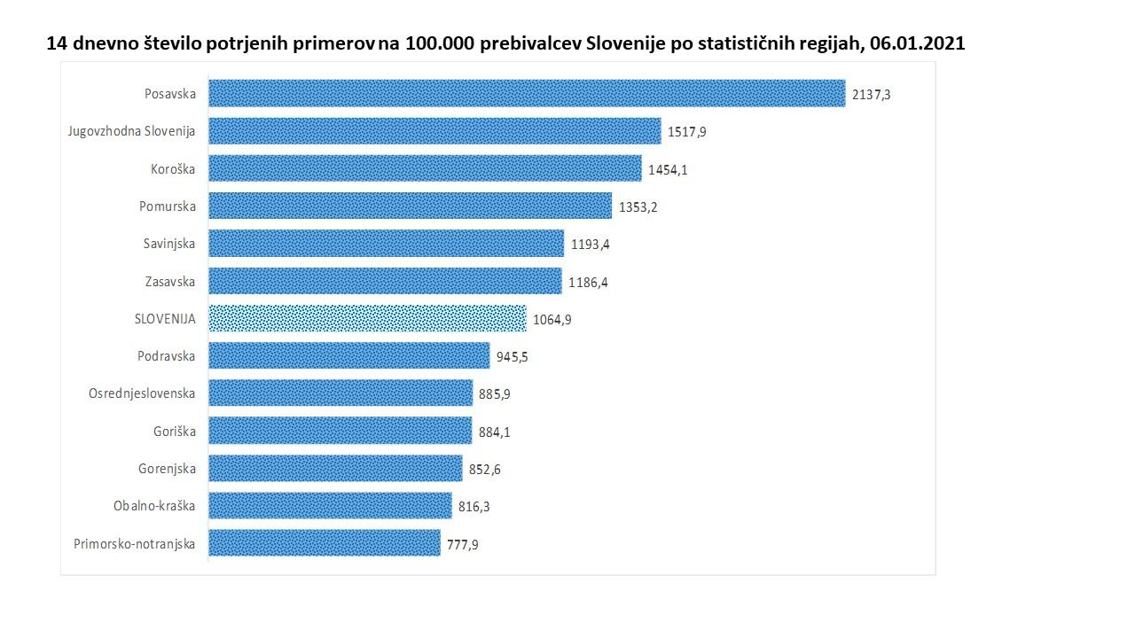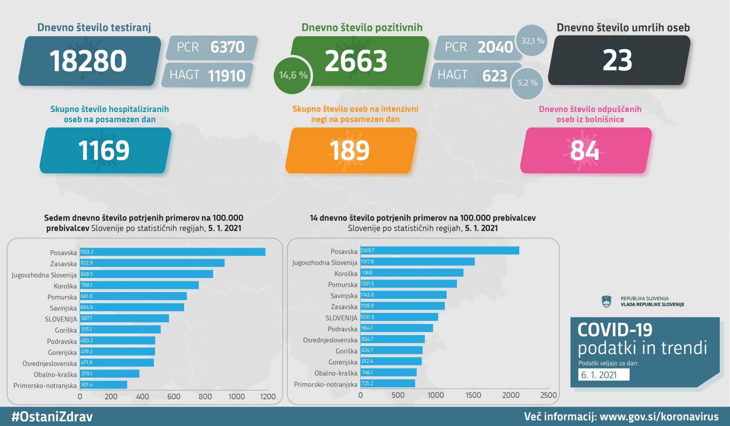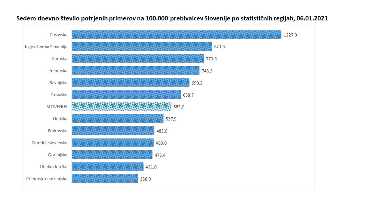 Trend obolelosti s koronavirusom v Sloveniji na dan 6. 1. 2021 (00:00-24:00):