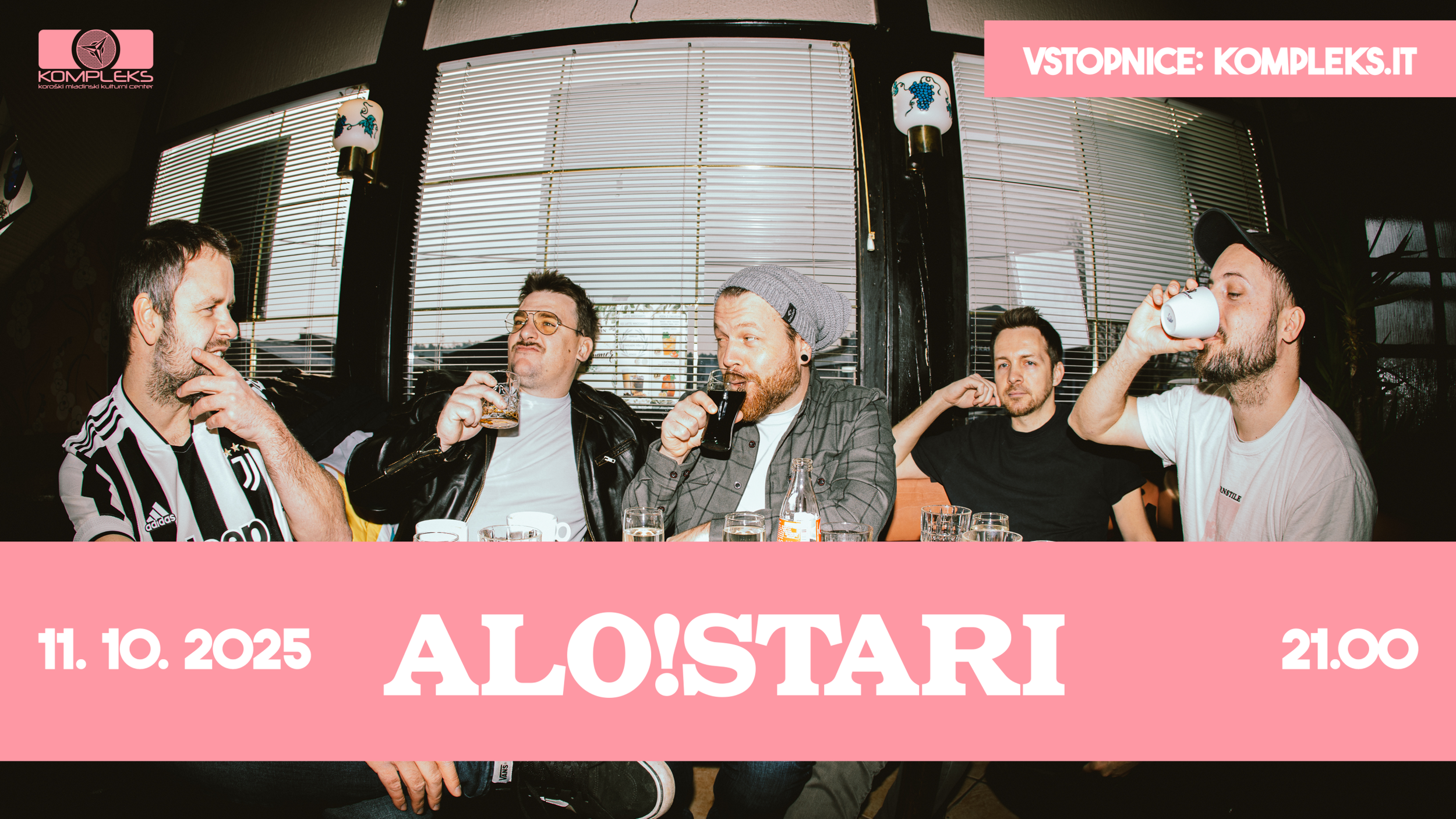 Alo!Stari je slovenska punk rock skupina iz Maribora, ustanovljena leta 2019. Njihova glasba je prežeta z energijo skate punka iz devetdesetih let, besedila pa so v mariborskem narečju, kar jim daje edinstven pečat. Člani skupine so vsi izkušeni glasbeniki, ki so prej igrali v zasedbah, kot so Trash Candy, Happy ol’Mc Weasel, Low Value, Multiball in Burning Legion. Leta 2021 so izdali prvenec »Pa kaj te s tao je?«, marca lani pa še drugi album »Sem prii, nič ti neom!« Njihove pesmi, kot so »Nea vem kam«, »Star« in »Alo, stari!«, so priljubljene med poslušalci, znani pa so tudi po energičnih nastopih v živo.