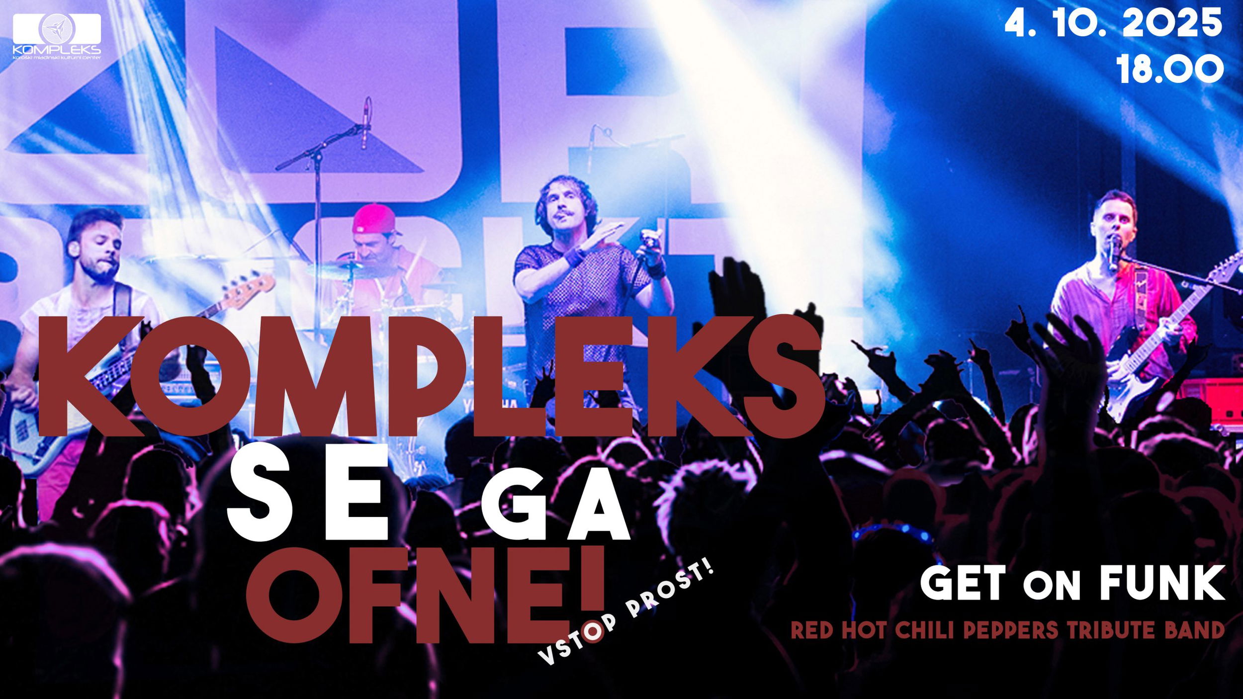 Sezono bomo začeli kot se spodobi, s partyjem, ki si ga boste zapisali v spominske knjige in dnevnike. Kompleks se ga ofne nas čaka že to soboto, 4. oktobra 2025! In vrnitev po počitnicah ne more biti kar tako, to je treba proslaviti kot se spodobi. Zato bo bar odprt že od 18. ure, ob 21.30 uri pa bodo na oder stopili Get On Funk: The Real RHCP Experience.