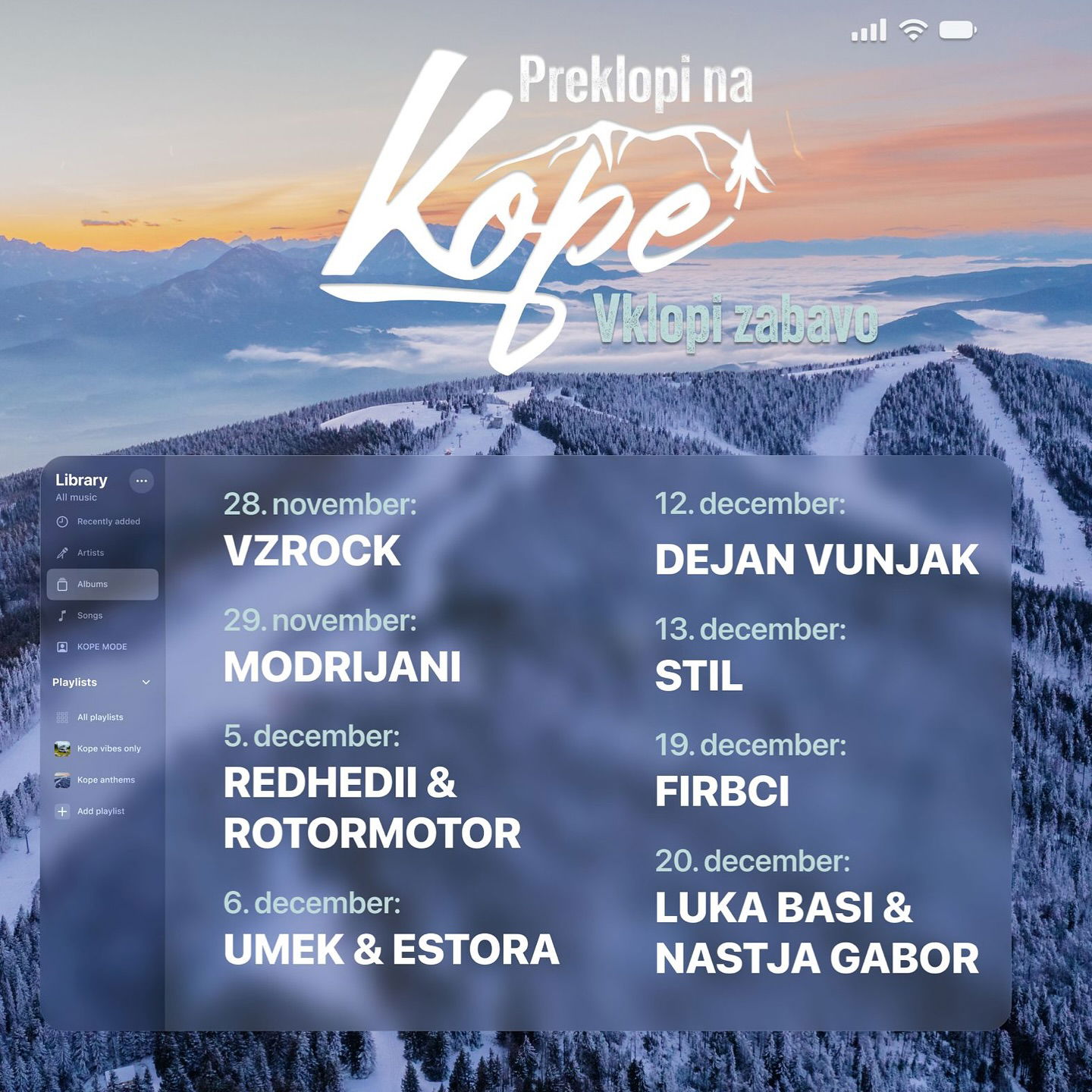 Zapišite si v koledar, povabite prijatelje in obvestite družinske člane, da boste skupaj žurali na Kopah in si ob dobri glasbi in še boljši družbi ustvarjali nepozabne spomine.