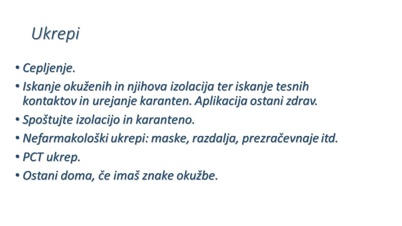 Delta različica je še vedno tista, ki prevladuje in verjetno bo še naprej tako, je dodal Krek. Gre za različico, ki je izredno kužna, približuje se kužnosti ošpic, je opozoril Krek in javnost pozval k cepljenju, spoštovanju osamitve in karantene ter ukrepov, kot sta nošenje mask in ohranjanje fizične razdalje.