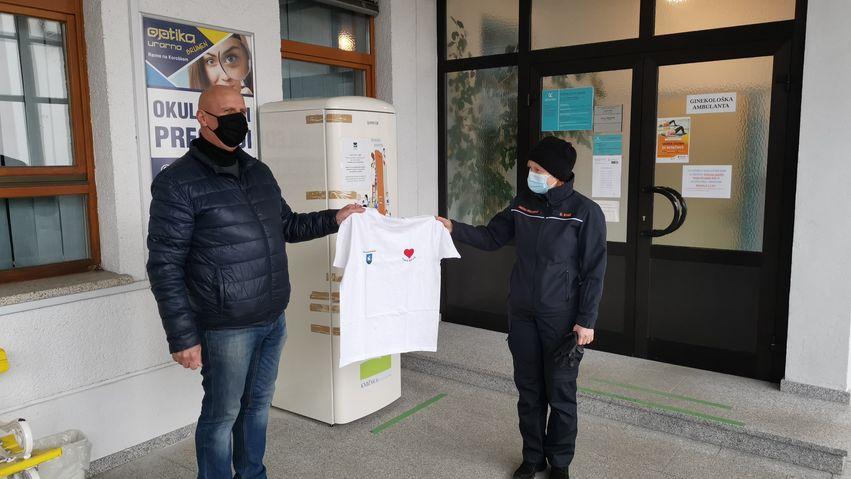 V zdravstvenem domu sta majice prevzela direktor Jože Studenčnik in glavna sestra Franja Hribernik, v imenu štaba Civilne zaščite občine pa Dominika Knez. Predstavnika sveta krajevne skupnosti sta v prostorih ZRCK na Ravnah predala majice tudi za vse reševalne operativne ekipe reševalnega centra, prevzela sta jih direktorica Marijana Kašnik in predstavnik reševalcev. "Ta majhna pozornost je zahvala vam vsem, ki se trudite za zdravje ljudi, varnost in rešujete življenja. Hvala, ker ste," je ob tem dejal Abraham.