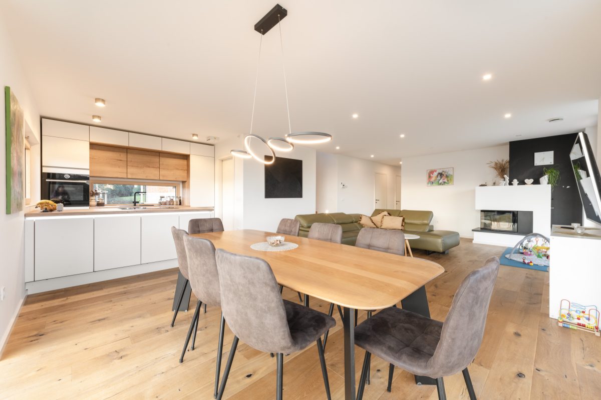 - Trajnost in udobje v ravnovesju – premišljen konstrukcijski sistem, naravni materiali in odlična zasnova ustvarjajo dom, ki združuje odgovornost do okolja, zdravje bivanja in vrhunsko udobje.