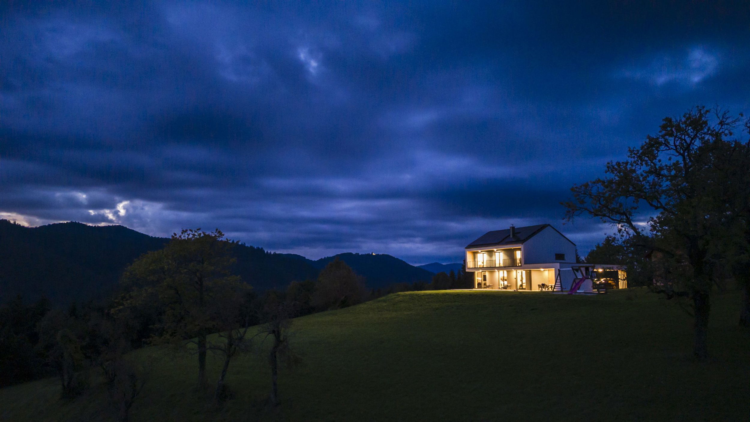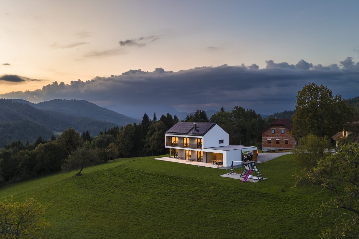 - Brezčasen dizajn in minimalistična eleganca – sodobna arhitektura z jasnimi linijami in umirjeno barvno paleto ustvarja eleganten, a topel dom, ki se popolno zlije z naravnim okoljem.