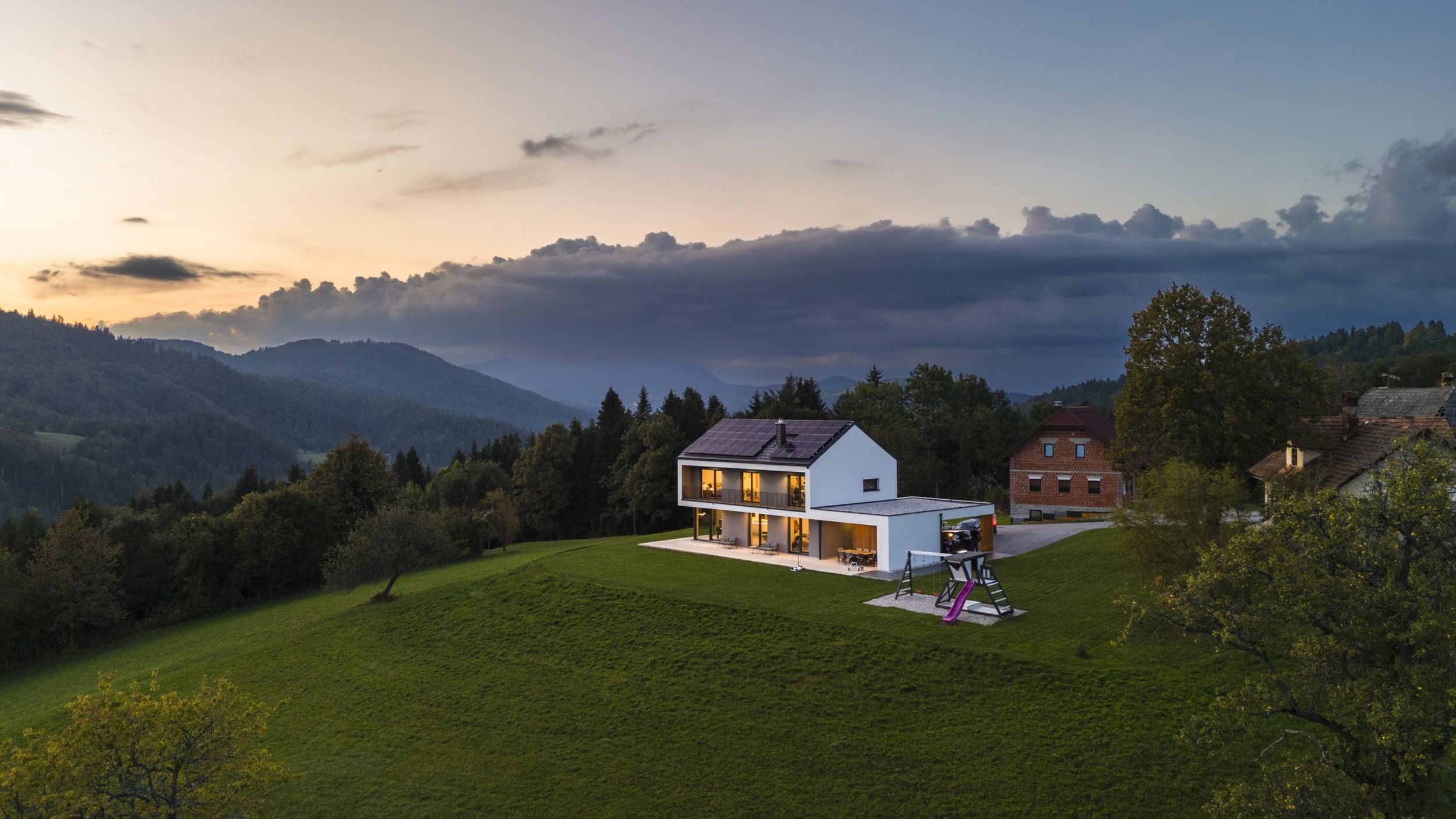 - Trajnost in udobje v ravnovesju – premišljen konstrukcijski sistem, naravni materiali in odlična zasnova ustvarjajo dom, ki združuje odgovornost do okolja, zdravje bivanja in vrhunsko udobje.