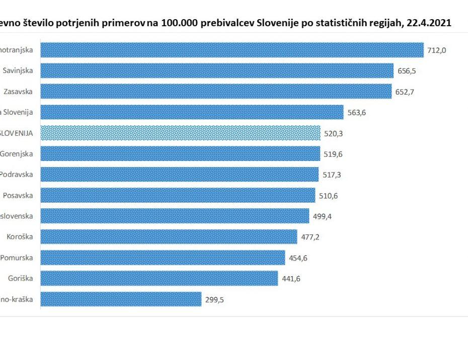 Trend obolelosti s koronavirusom na dan 22. 4. 2021 (00:00-24:00):