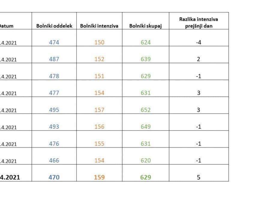 - Št. oseb na intenzivni negi: 159