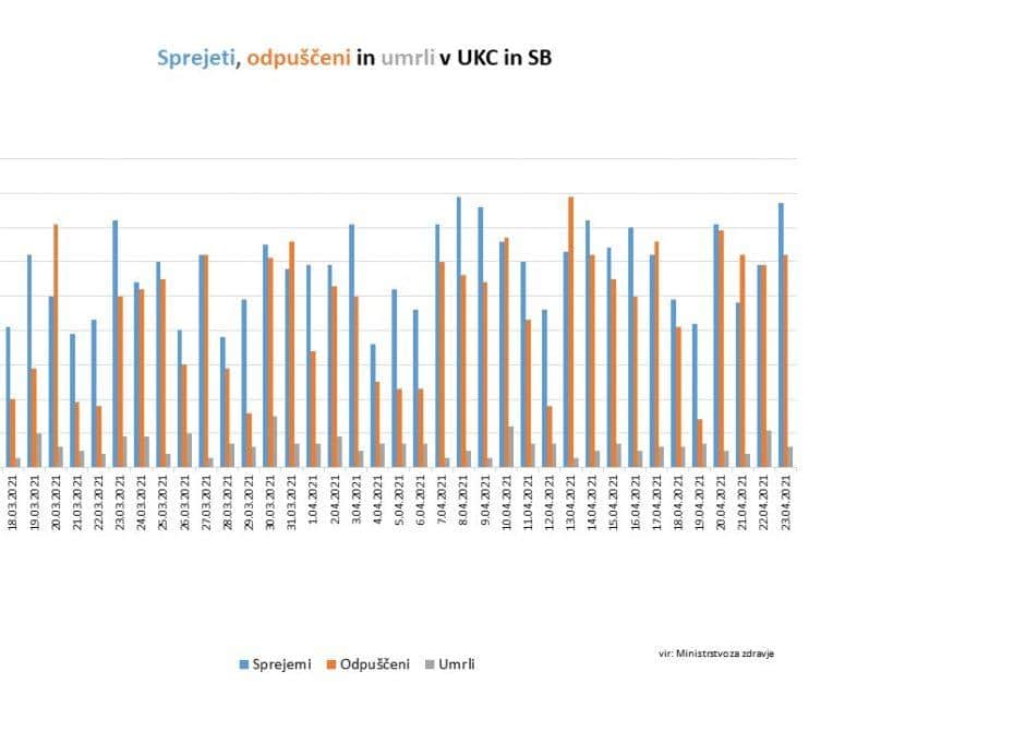 - Dnevno št. odpuščenih iz bolnišnice: 62