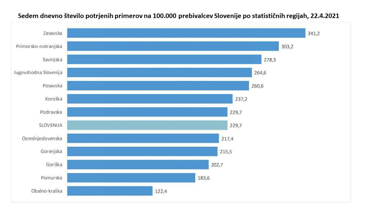 Trend obolelosti s koronavirusom na dan 22. 4. 2021 (00:00-24:00):