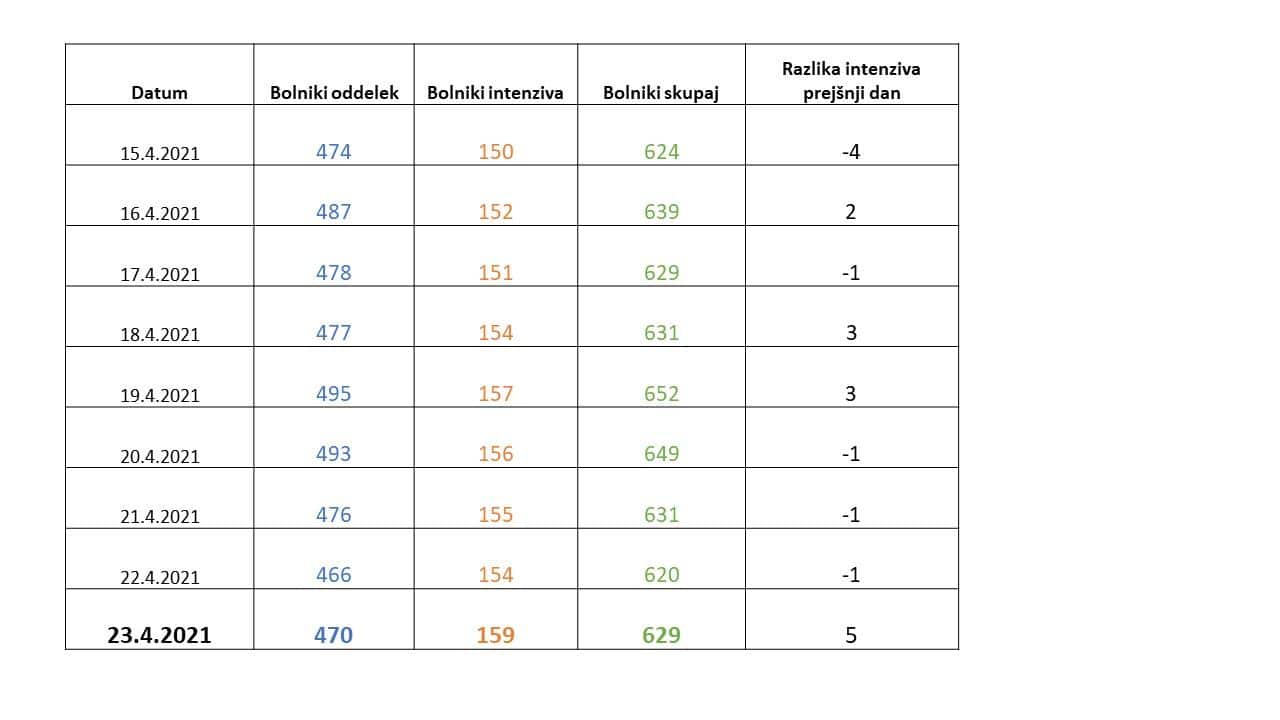 - Št. oseb na intenzivni negi: 159