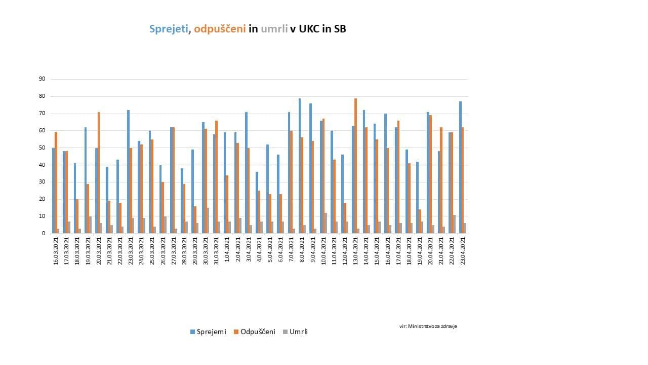 - Dnevno št. odpuščenih iz bolnišnice: 62