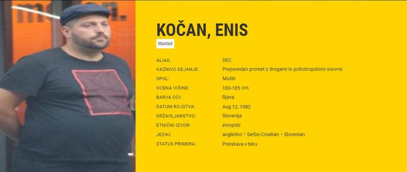 39-letnika Europol išče zaradi prometa z drogami in psihotropnimi snovmi. Kot piše na spletni strani urada, je Kočanov vzdevek Dec. Visok je dobrih 180 centimetrov, ima rjave oči ter poleg slovenščine govori še angleško in srbohrvaško. Preiskava proti njemu je še v teku.