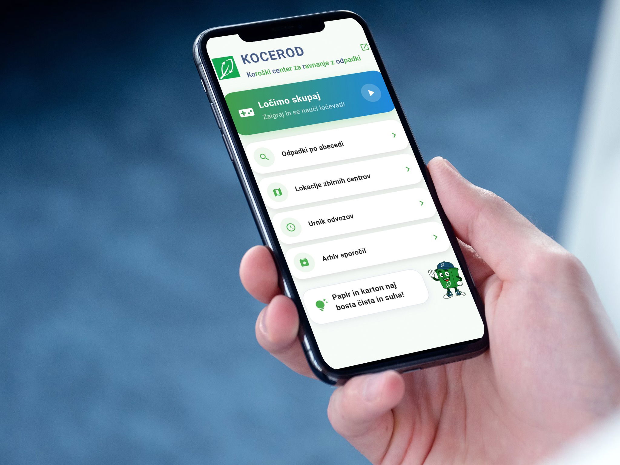 Eden izmed naših novih produktov je mobilna aplikacija KOCEROD, ki uporabnikom omogoča dostop do urnikov odvozov odpadkov, zemljevida lokacij zbirnih centrov in njihovega delovnega časa. Aplikacijo bodo v prihodnje še nadgrajevali glede na potrebe uporabnikov, že prihodnje leto pa bo ponujala tudi interaktivne urnike. Uporabniki bodo s pomočjo potisnih sporočil obveščeni o akcijah odvozov odpadkov ter drugih aktualnih vsebinah.”Tisti, ki bodo aplikacijo naložili in potrdili prejem obvestil, bodo prejemali sporočila in imeli možnost dostopa do arhiva, če bodo želeli preveriti informacije, povezane z okoljskimi vsebinami,” pojasnjuje Mirkac.