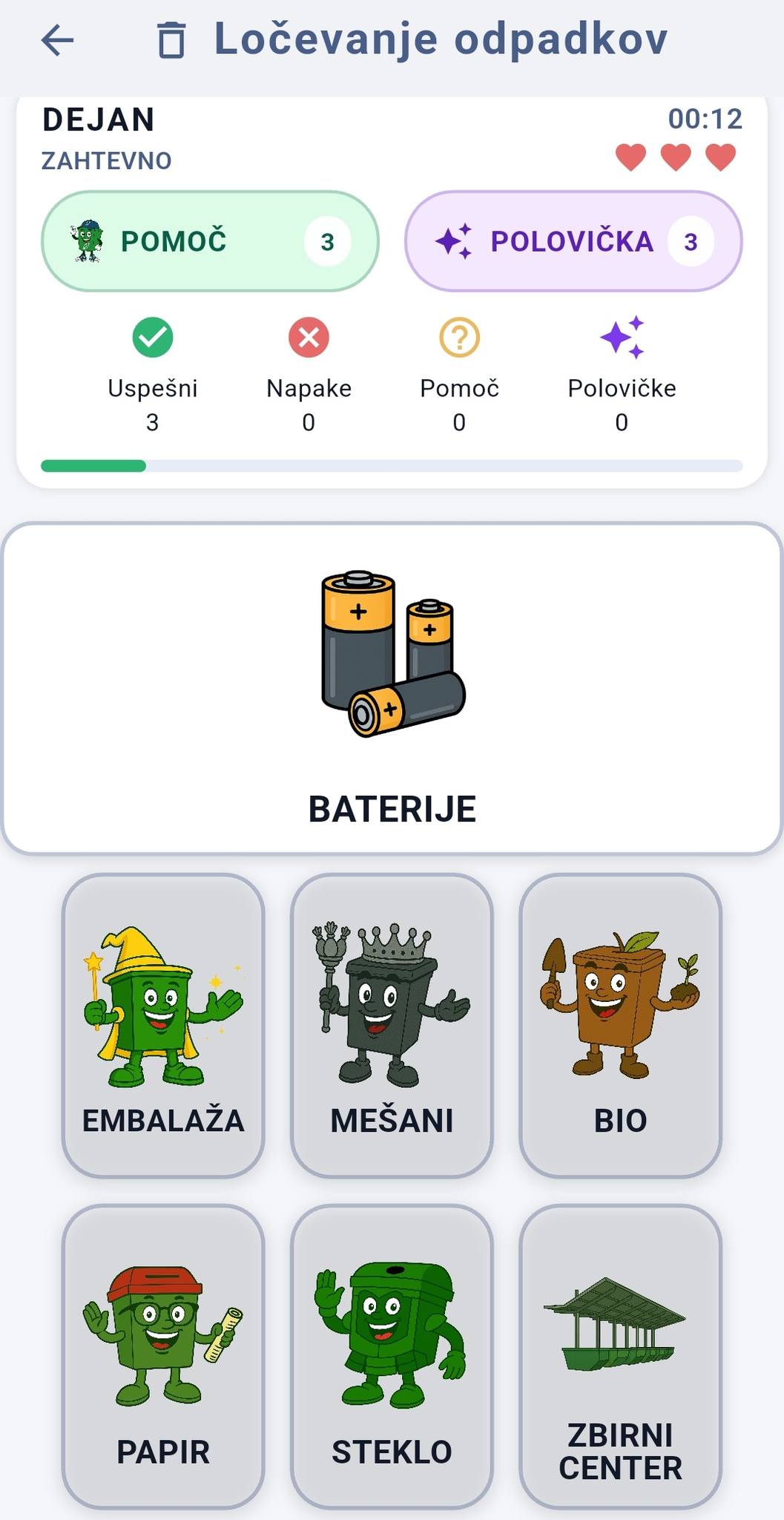 Za otroke so v okviru mobilne aplikacije razvili igrico pravilnega ločevanja odpadkov, ki spodbuja učenje skozi igro. Uporabniki morajo v njej pravilno razvrstiti kar 360 vrst odpadkov, pri čemer igra ponuja tri težavnostne stopnje in več podnivojev. Igrica je namenjena tudi uporabi na interaktivnih tablah in pri pouku, mobilna aplikacija pa omogoča povezavo s prenovljeno spletno stranjo podjetja, ki smo jo vsebinsko in grafično posodobili ter nadgradili s ključnimi informacijami za občane.