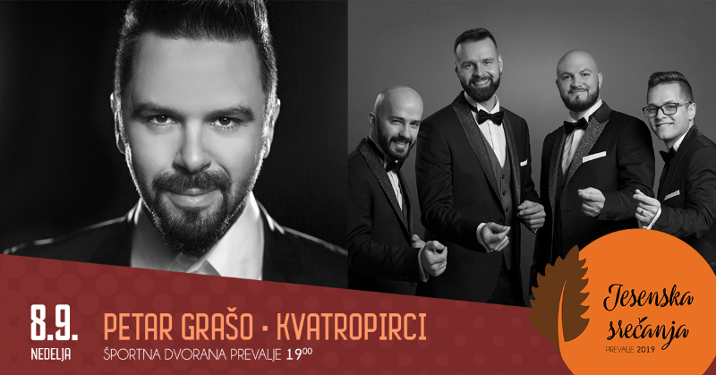 September je tu in kmalu se bodo na Prevaljah pričela 33. Jesenska srečanja. Tudi letos so pripravili pestro dogajanje in nastope vrhunskih glasbenih izvajalcev za vse okuse. Že v nedeljo, 8. septembra 2019 bo koncert na katerem bo nastopil hrvaški pevec Petar Grašo in Kvatropirci. Pohitite z nakupom vstopnic, saj jih je na voljo še zelo malo.