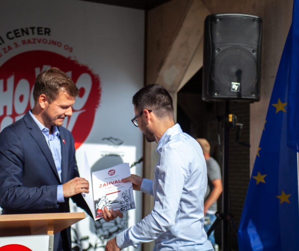 Pred slavnostnim odprtjem je vodja Mladinske iniciative za 3. razvojno os še podelil zahvale posebej zaslužnim članom iniciative. Te so prejeli: Gašper Kogelnik, Rok Šater, Andraž Lečnik, Jaka Kotnik, Danijel Jelušić, Rok Plesec in Andrej Grobelnik.