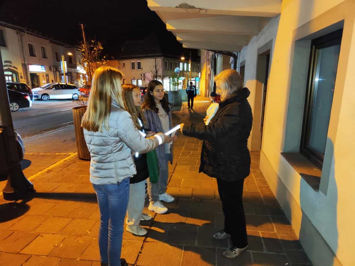 Učenke in učenci, ki sodelujejo pri predmetu Kaj veš o prometu, so med občanke in občane razdelili kar 200 odsevnikov in zloženk.